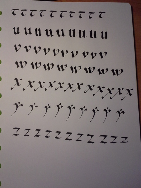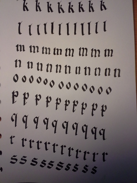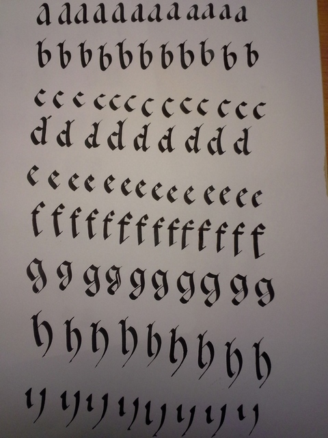 Purtroppo mi sono accorto che il set di calligrafia che avevo preso tempo fa, è molto limitato, non dà quella traccia che il gotico vuole sulla carta, perchè il pennino risulta molto asciutto. Quindi quel bel tratto quadrato non mi riesce semplice.