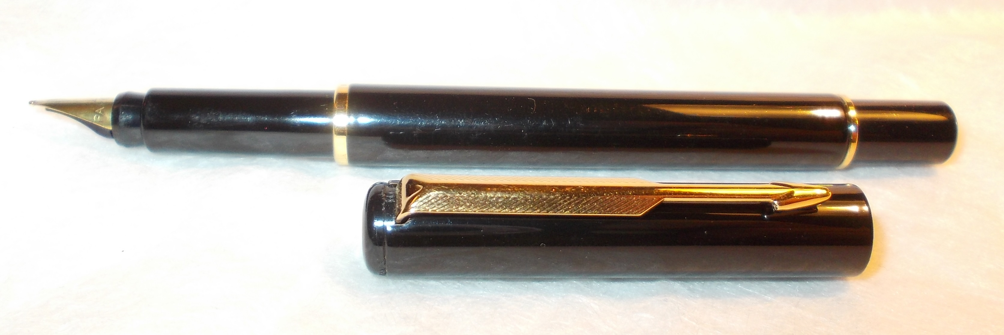 Il pennino è placcato in oro, dal taglio medio ed è uguale per forma e stile a tanti altri Parker: piccolo, quasi conico e senza foro di sfiato.