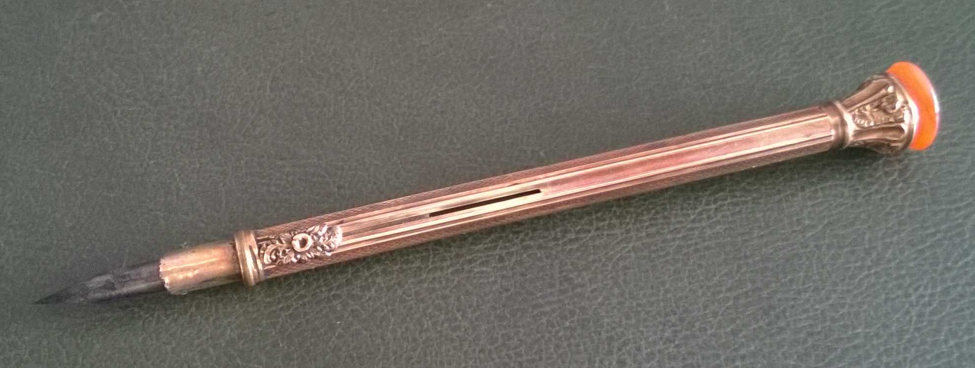 Innanzitutto non è una penna stilografica. si tratta di un pennino. Ne ho uno inglese laminato in oro, praticamente uguale, ma che contiene anche un portamine