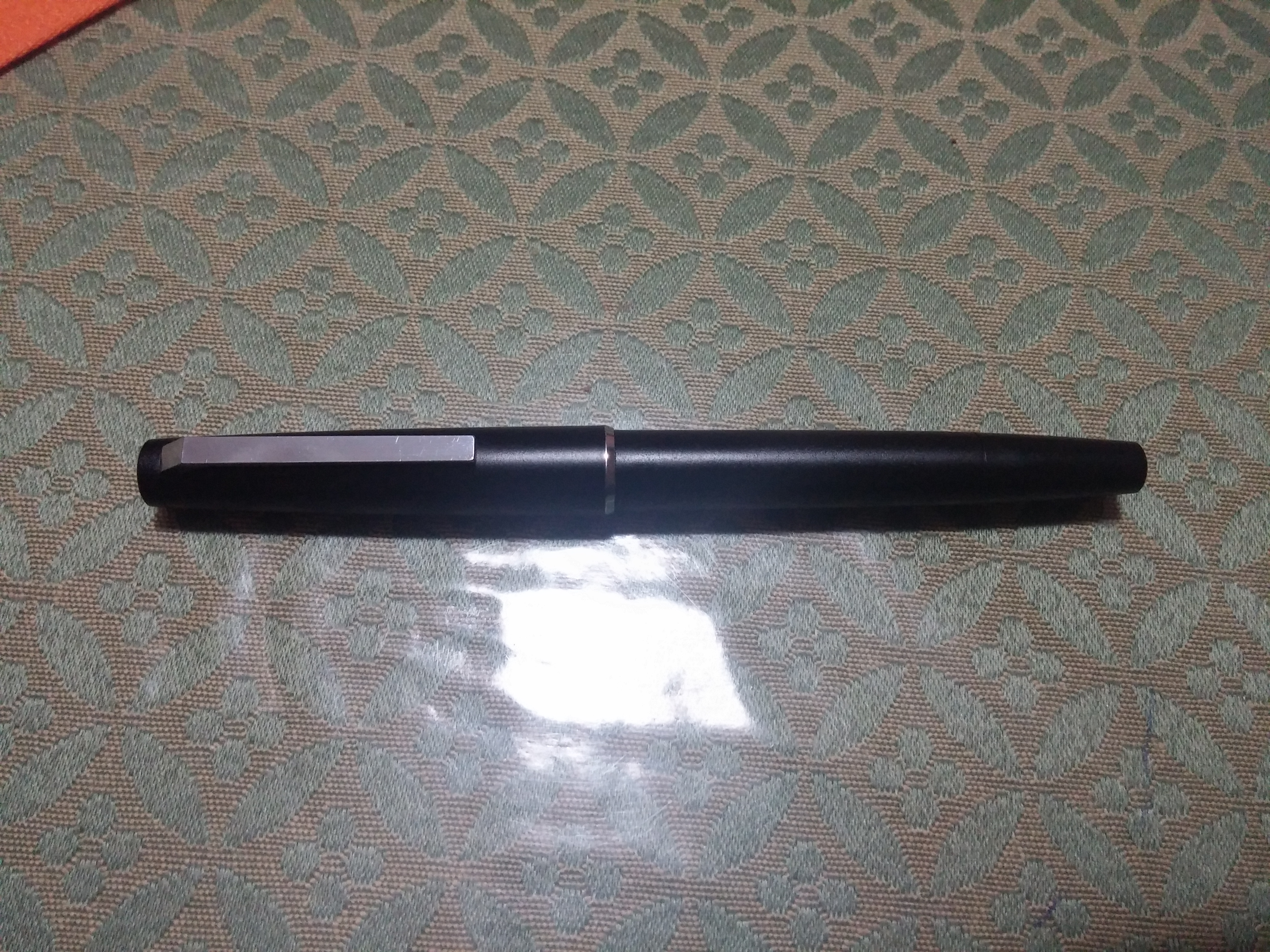 Flat top e bottom il corpo e il cappuccio dimagriscono verso le estremità e terminano bruscamente in due sezioni rotonde con al centro un cerchio in alluminio vuoto dalla parte del fondello e con una 'L' sul cappuccio.