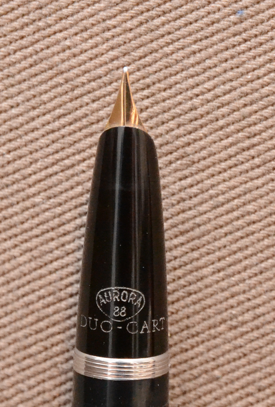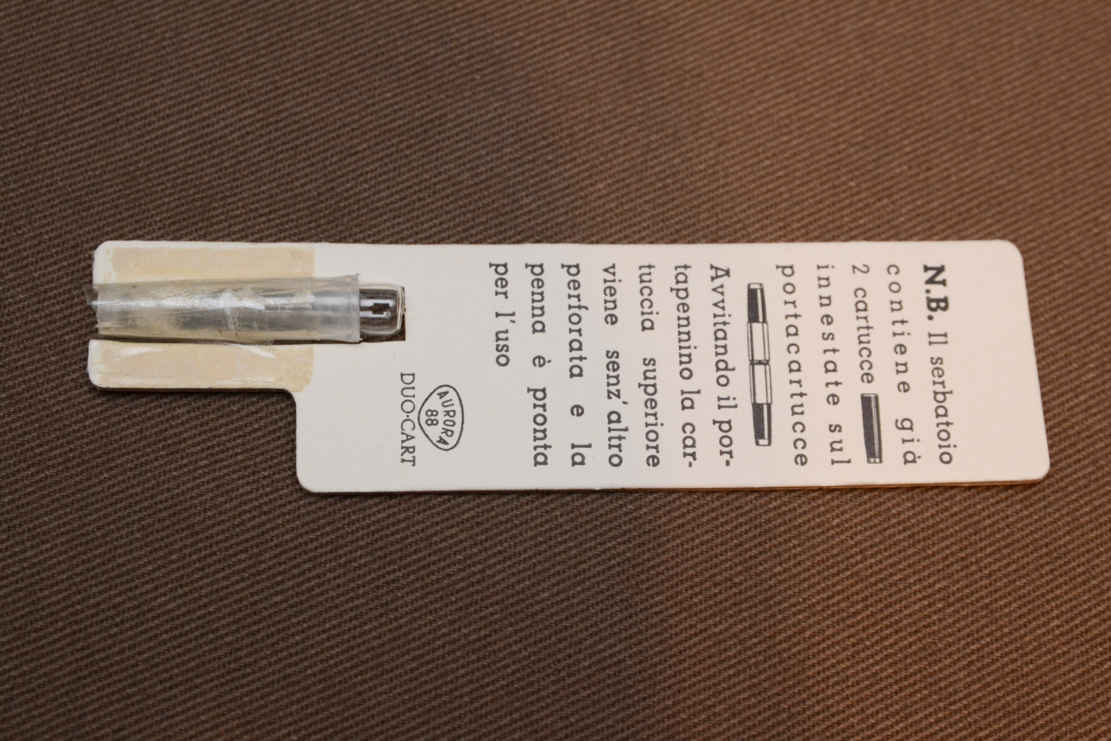 Più avanti ho trovato una Aurora 88 Duo-cart prima serie in perfette condizioni, mai inchiostrata nella sua confezione originale, molto bella per i mie gusti, è diversa dal solito per il tappo corto e il fusto con la forma della sede del cappuccio, Ho altre Duo-cart, ma come questa mai vista, sicuramente una delle prime versioni il numero di serie è 0796.