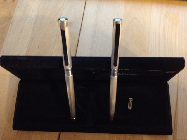 Ti hanno detto che sono due Noblesse (direi anch'io); tu sai che sono in argento (se regolarmente punzonate): prova a cercare su Ebay fra gli oggetti venduti qualche Montblanc Noblesse e ti fai un'idea della valutazione media del modello "standard"; aggiungici l'argento...