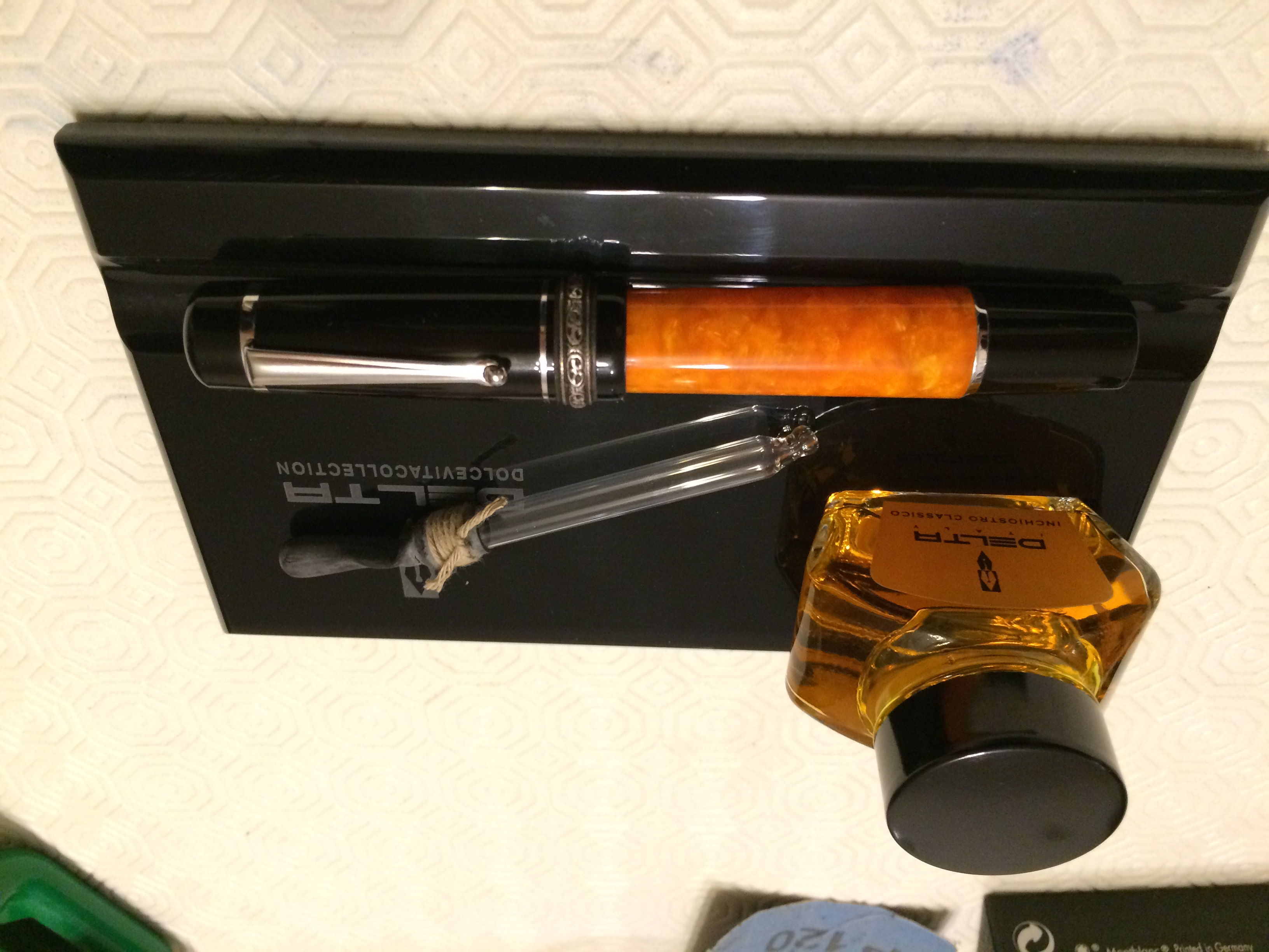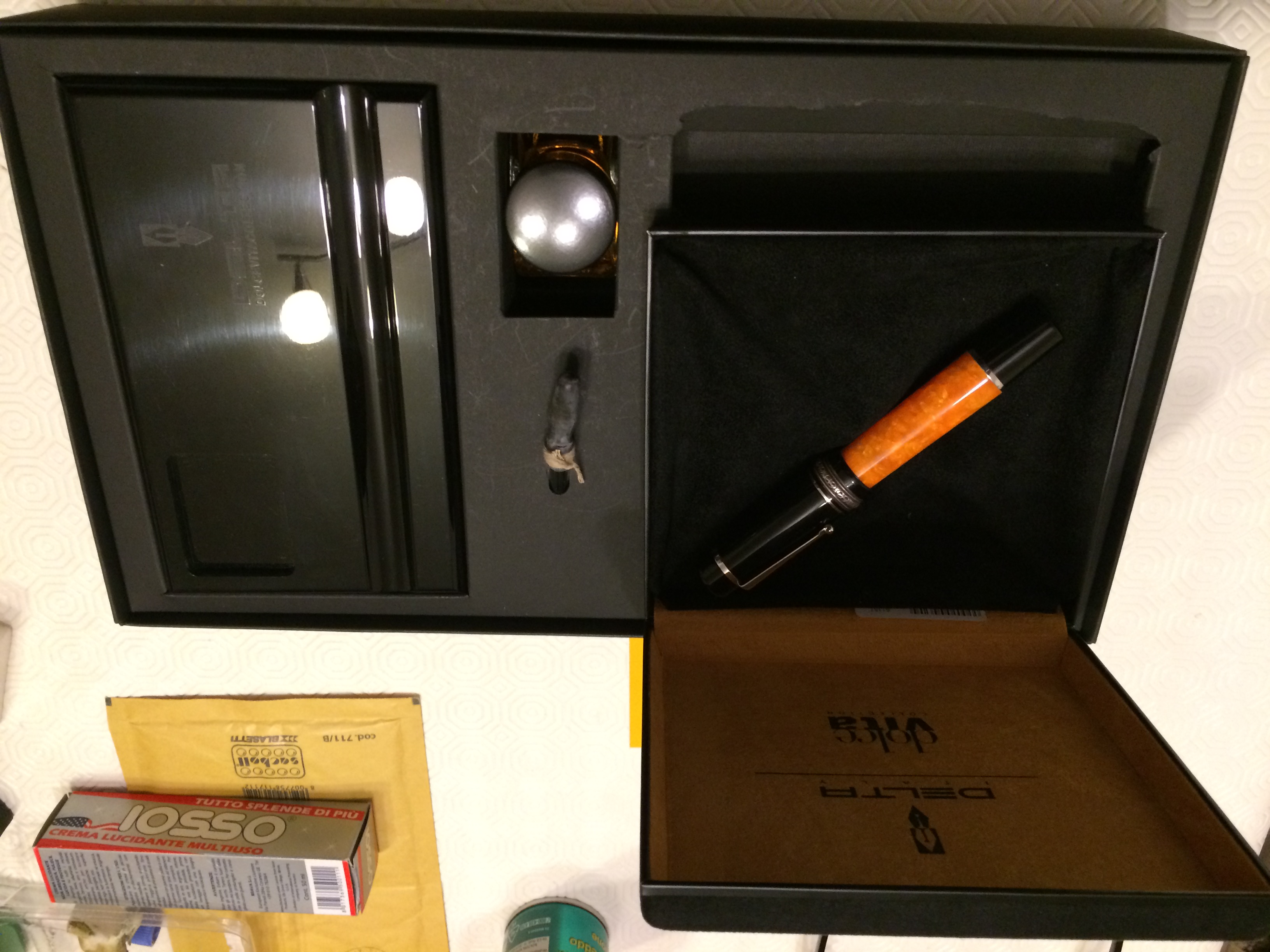 All'interno una scatola portapenne vellutata (con la penna dentro)