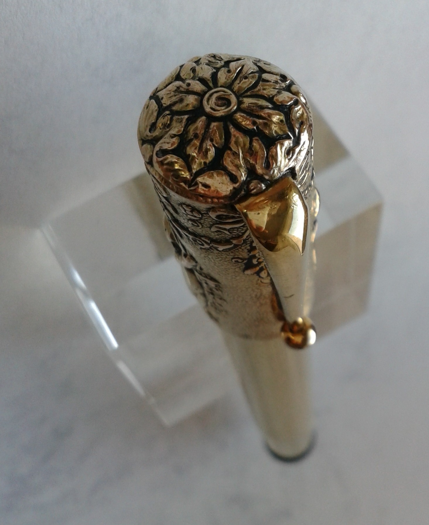 Il pennino in oro 14 carati con foro a cuore reca inciso: