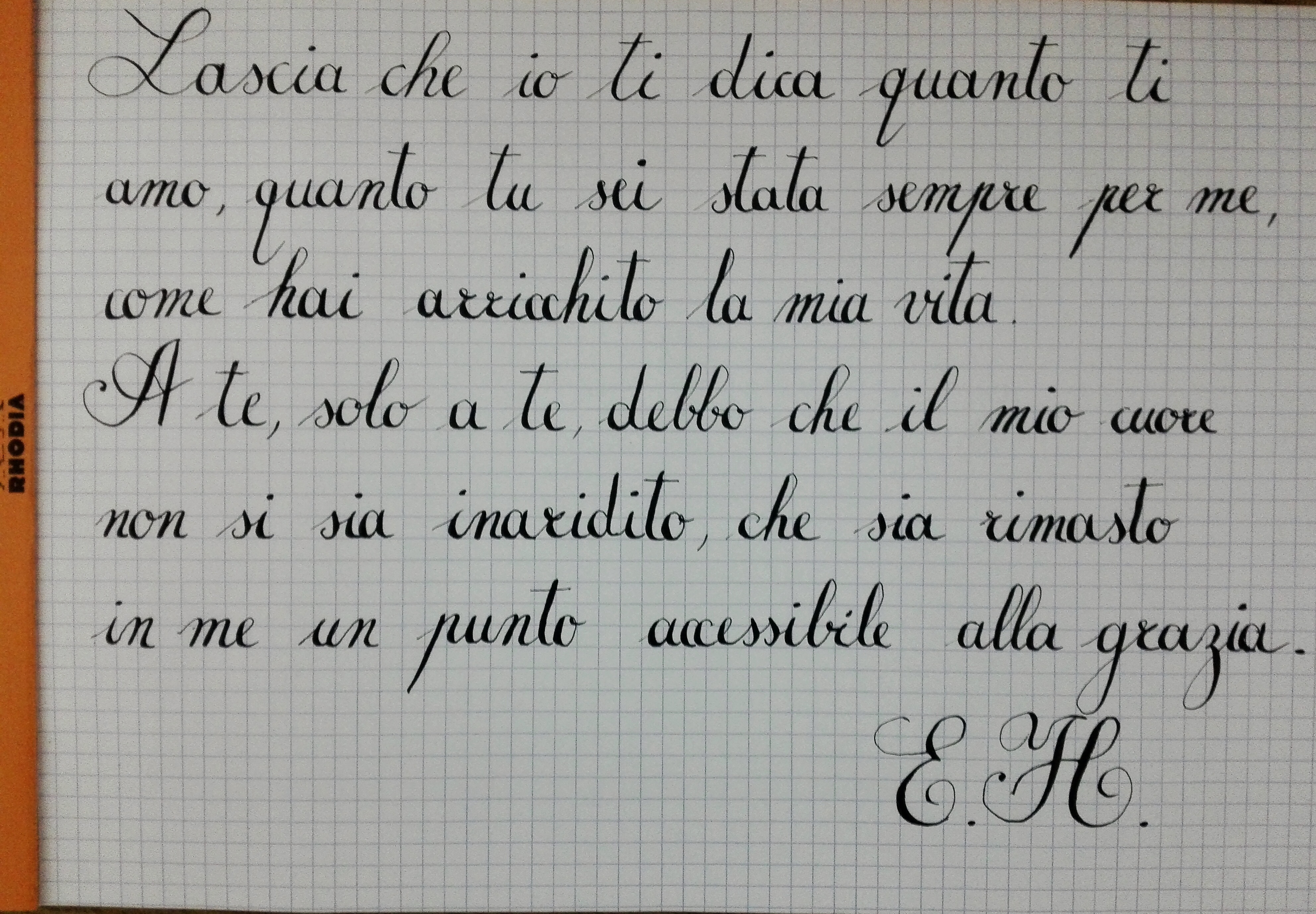 Ho dovuto provare a scrivere un testo completo tentando di unire le lettere e cercando di mantenere una certa omogeneità senza le linee guida ma con dei semplici quadretti.