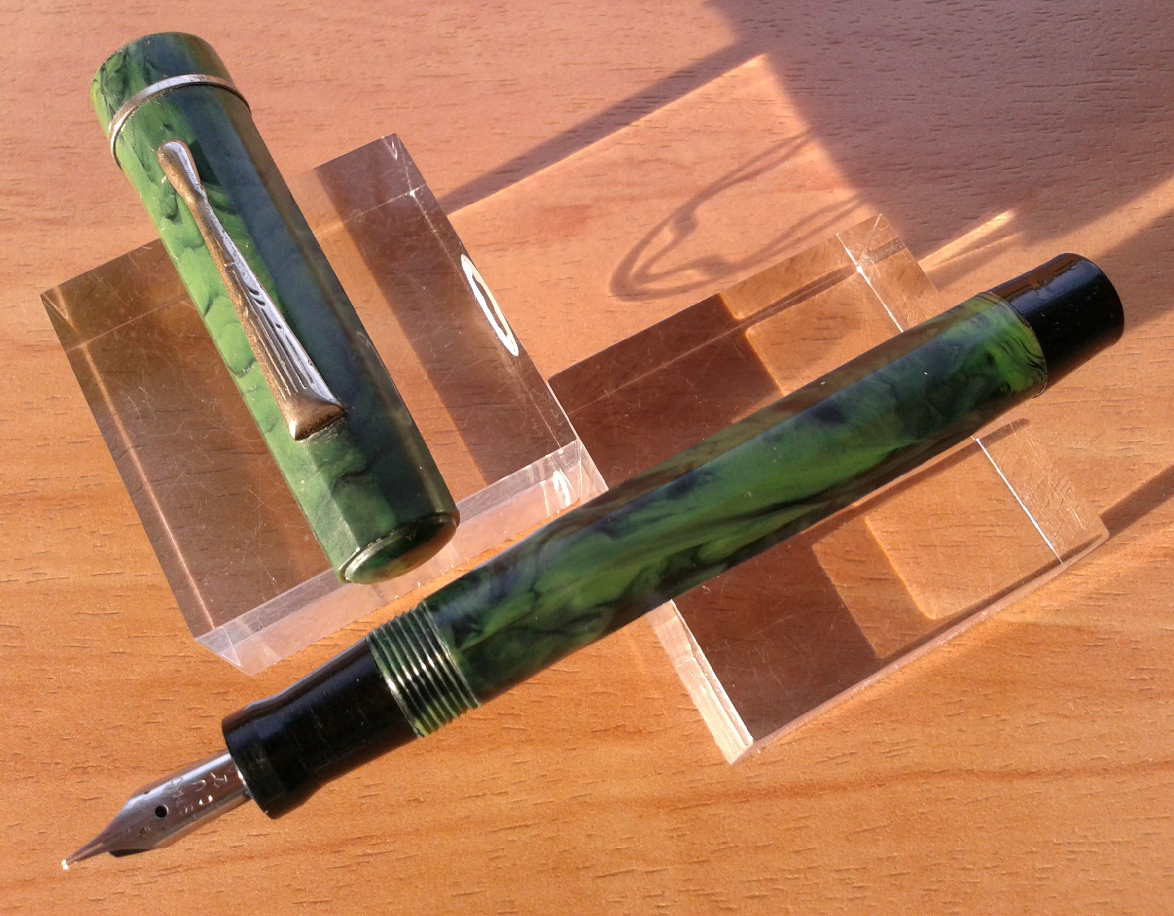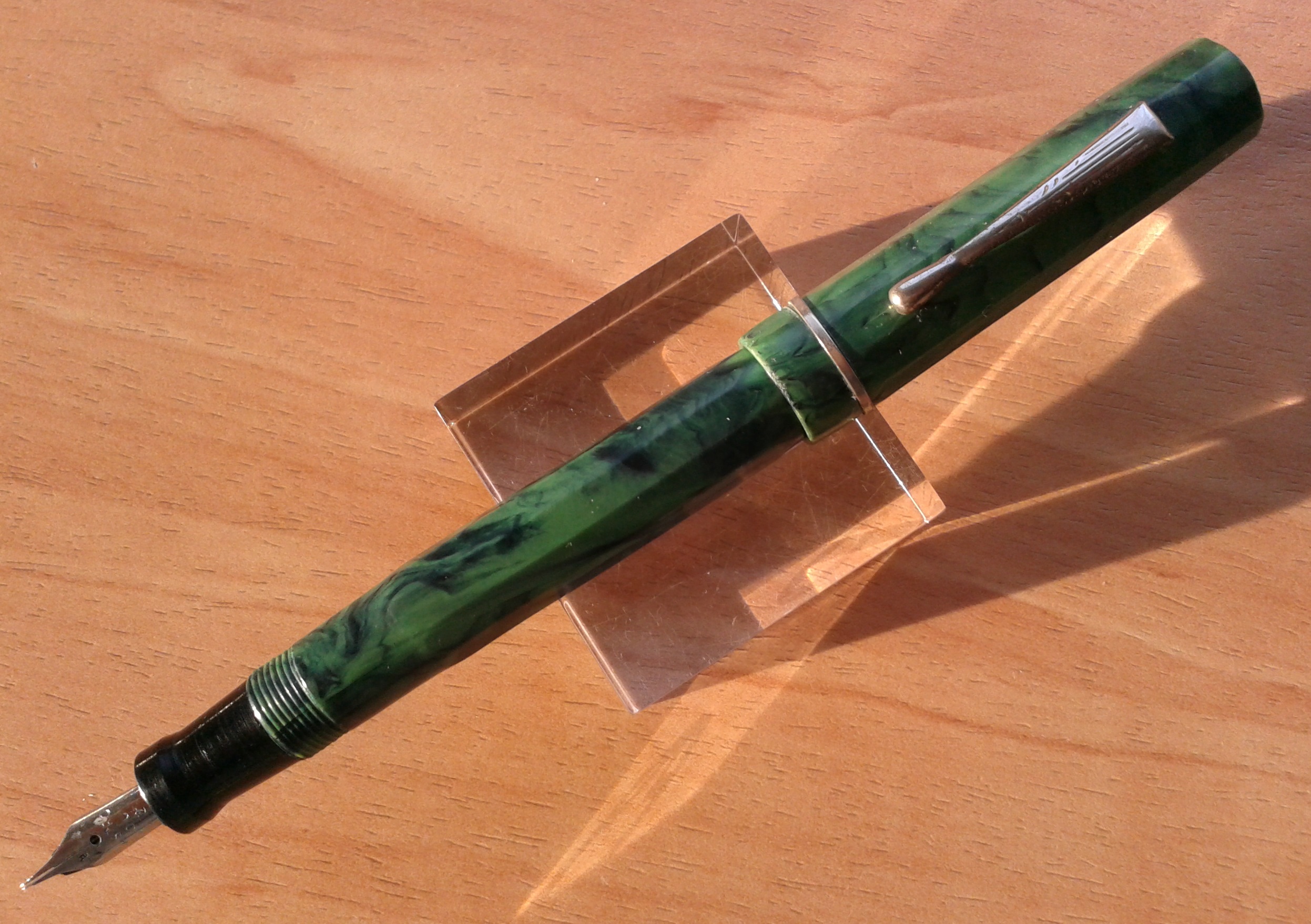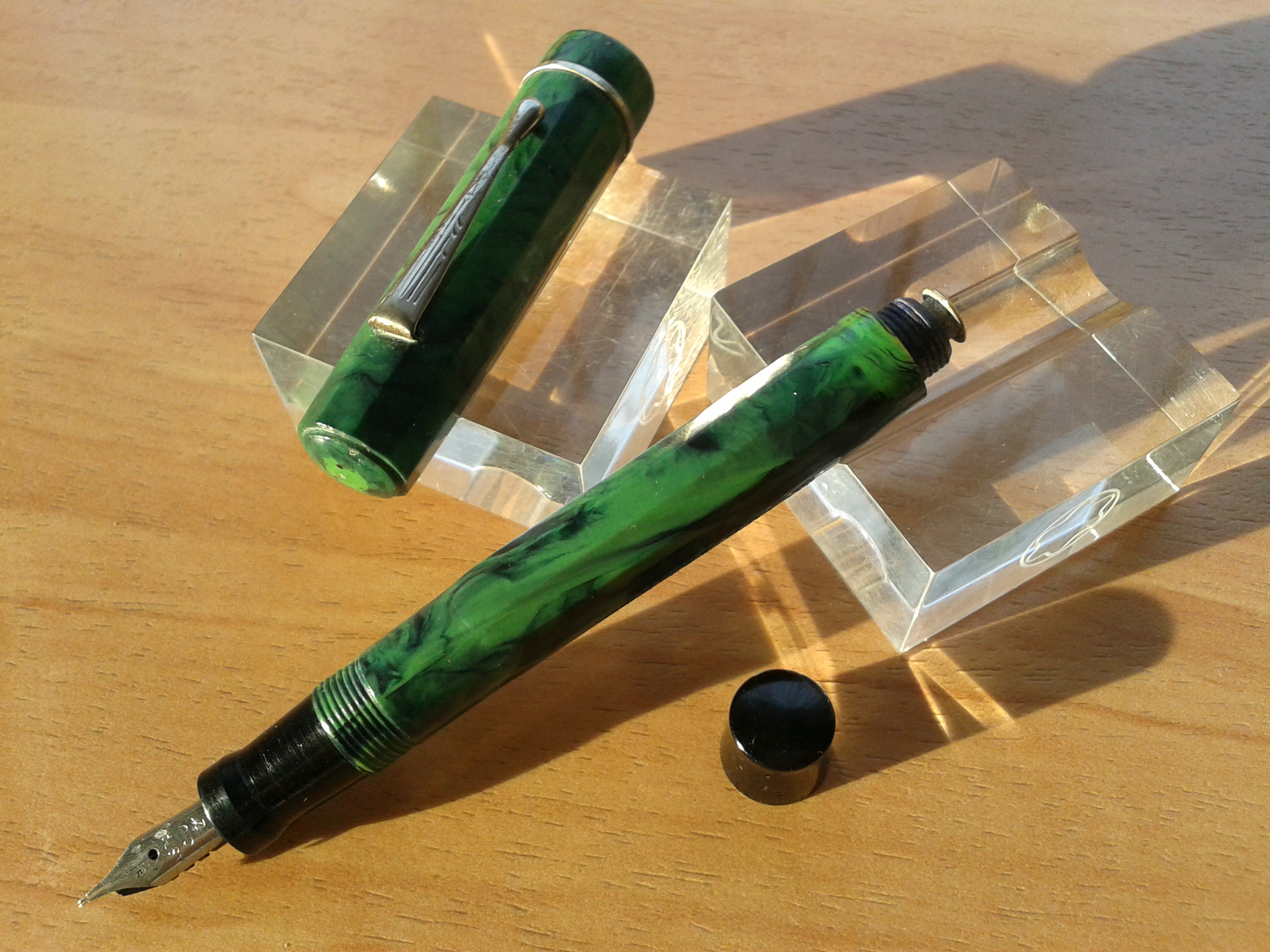 Quella verde non è celluloide, ma "galalite": materiale versatile ed interessante, ma non tradizionale per una penna. Una curiosità, più che altro.