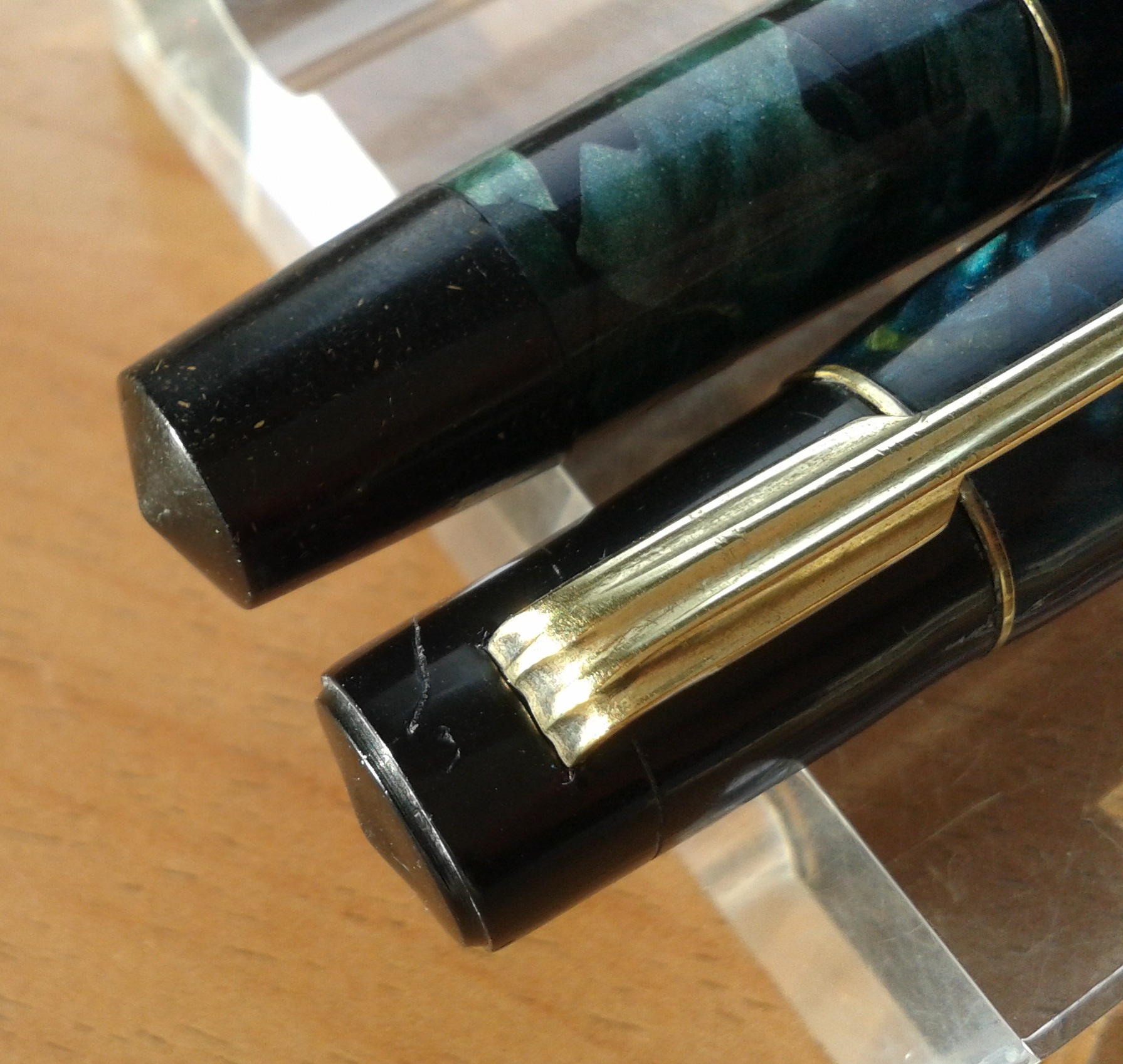Che la ragion d'essere di un tale design fosse esclusivamente l'utilizzo degli scarti di altre lavorazioni?! A ben vedere, il materiale impiegato non mi sembra così pregiato da "dover" essere recuperato a tutti i costi: per intenderci, la celluloide colorata di Ro-Set non è certo uno scarto del top di gamma di Aurora... E poi, un assemblaggio è decisamente più difficile di una tornitura tradizionale, anche tenendo conto che in determinati luoghi e tempi i materiali grezzi costano assai più della manodopera specializzata capace di lavorarli...