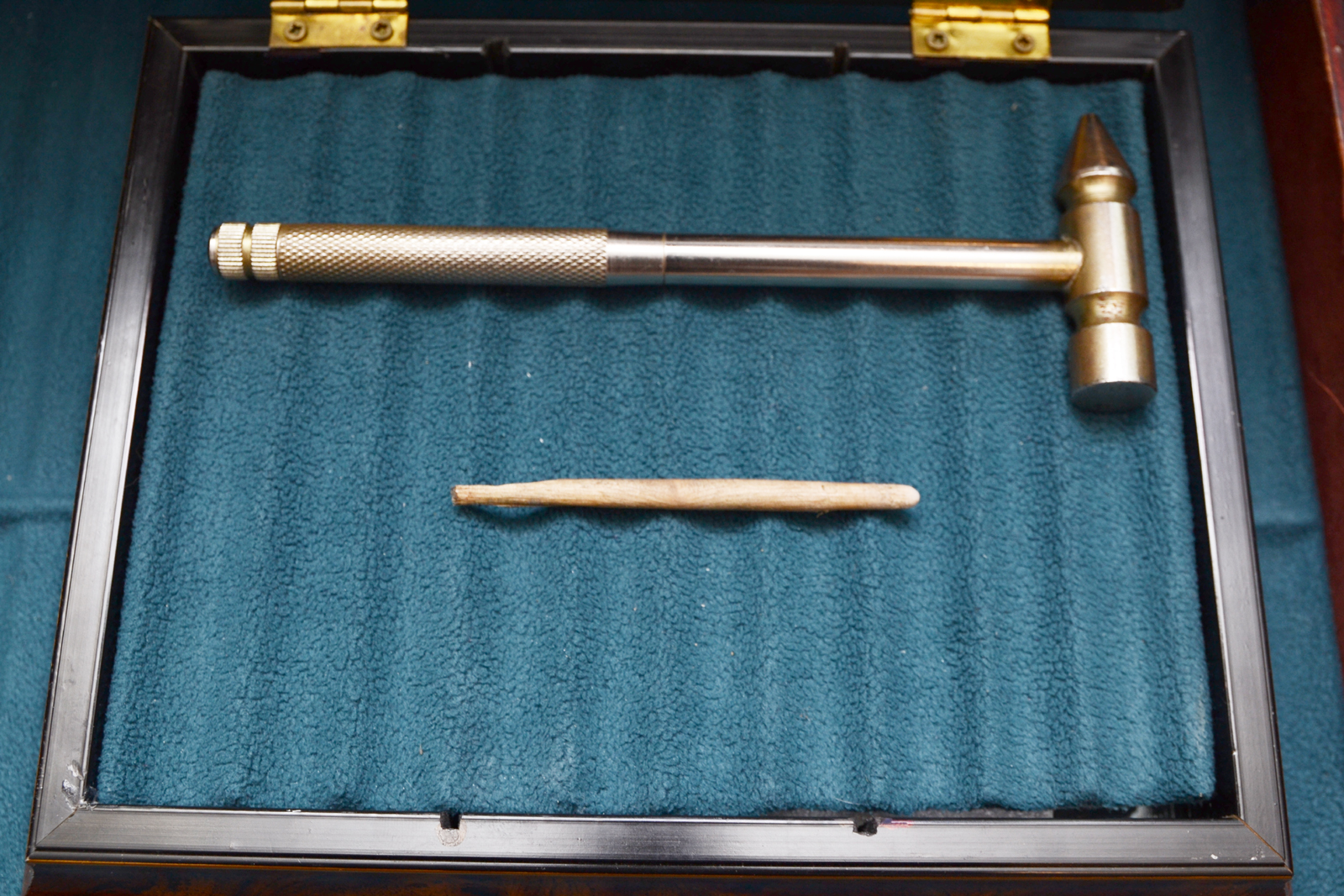 Preparare 2 o 3 asticelle di vario spessore con la punta arrotondata da usare man mano che diminuisce l'ammaccatura (foto 3) ed un martelletto per battere sull' asticella a modi scalpello (foto 4).