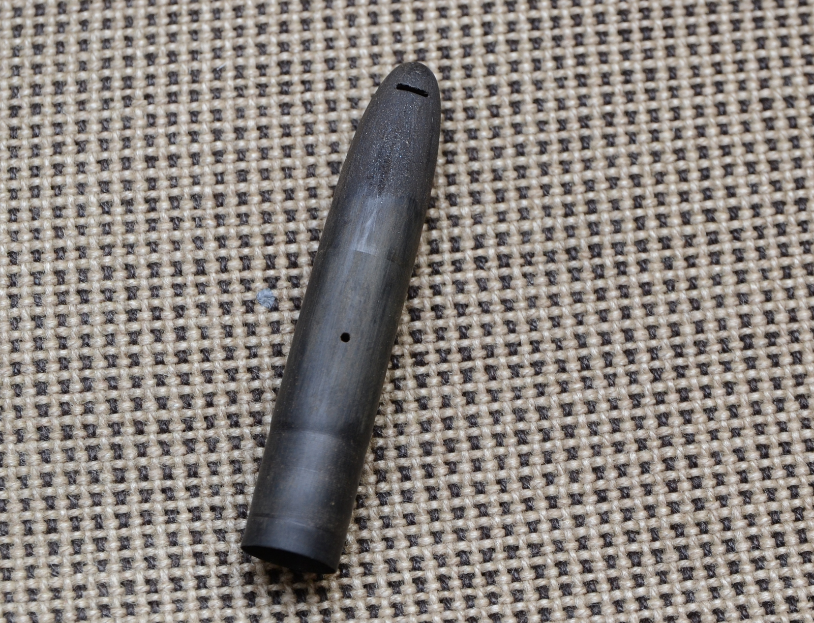 Riscaldare con un accendino il cappuccio, e con un rottame dalla stessa filettatura estrarre gradatamente la parte in ebanite, io ho usato il suo fusto non avendo rottami di quella misura.