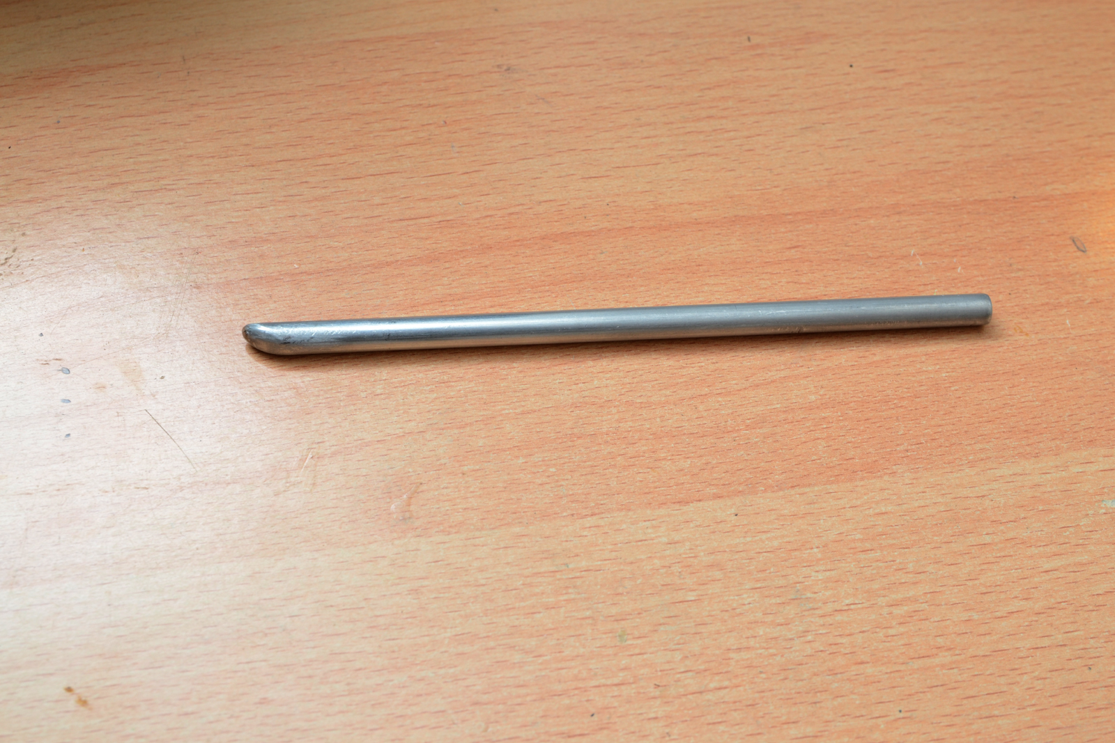 Se l'ammaccatura è sulla parte interna e non coperta da alcun che, si può agire con un tondino in alluminio con la punta arrotondata come questo in foto, o qualcosa che entri a misura nel cappuccio, ma sempre con i bordi arrotondati.