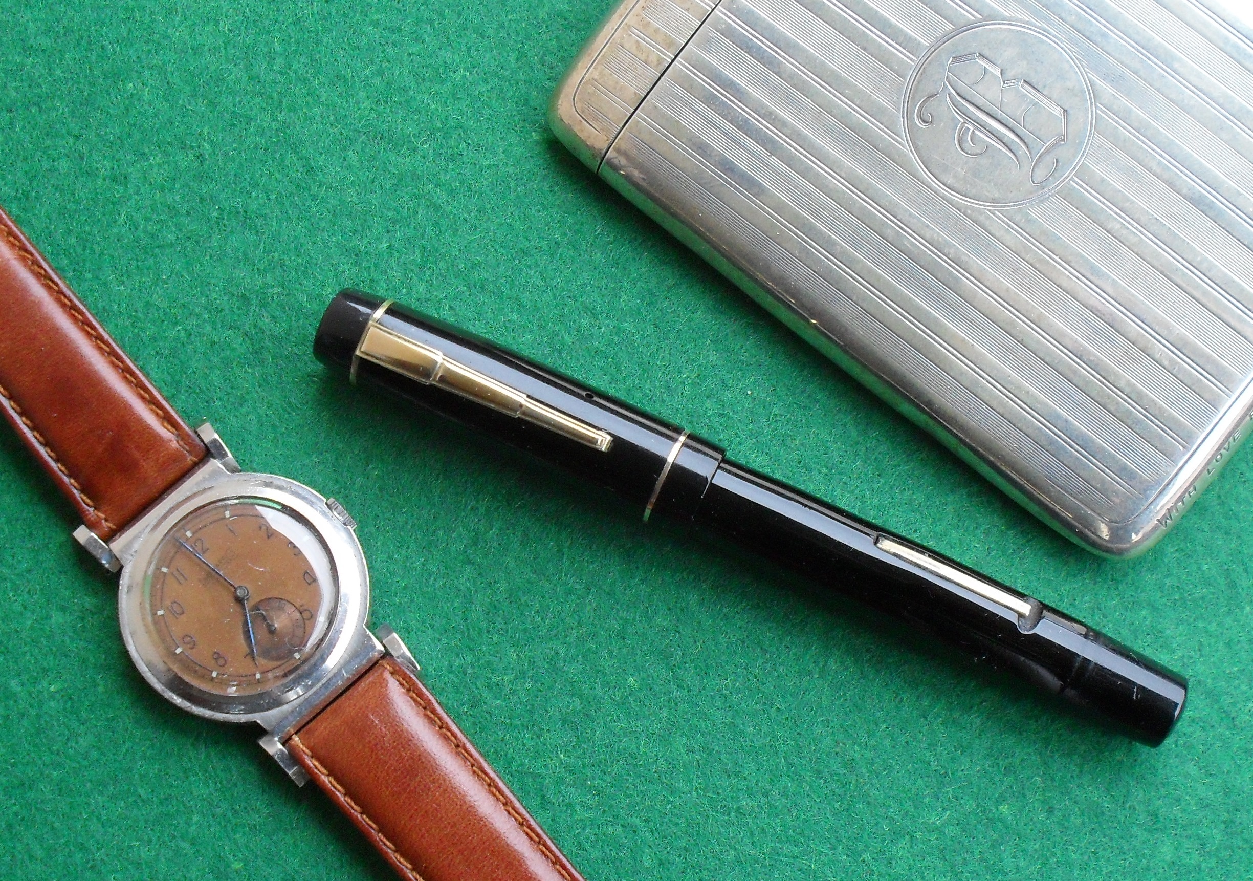 Una tipica penna inglese degli anni Trenta che, come le sue connazionali coeve, è sempre in grado di donare al suo possessore un’affascinante sensazione di continuità storica e di riportarlo, seppur per brevi istanti, ad un periodo non poi così remoto (anche se oggi, per molti versi, sembra davvero lontanissimo). Bastano un foglio di buona carta da lettere, un’atmosfera tranquilla ed un po’ di musica swing prima maniera…