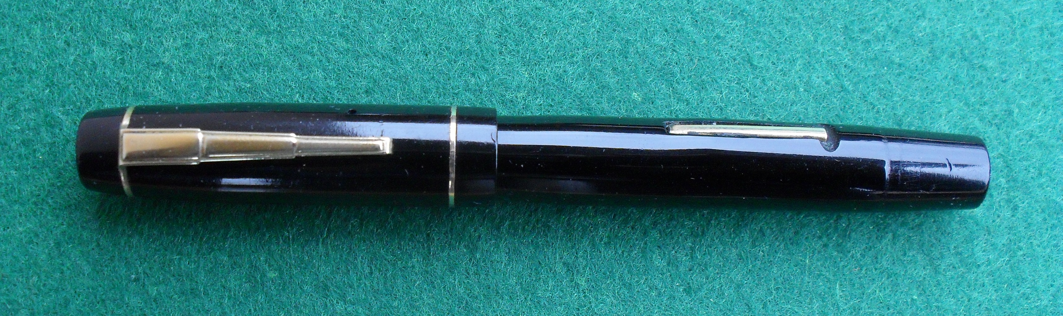 Ho acquistato la penna che vedete attirato dalla curiosità per il marchio, senza dubbio poco conosciuto, non solo in Italia ma anche all’estero. Amo particolarmente le stilografiche britanniche degli anni ‘30, soprattutto se nere, perciò la penna mi è piaciuta a prima vista, anche grazie alla sua bella clip in perfetto stile art deco, molto rappresentativa del periodo storico nel corso del quale la stilografica fu commercializzata.