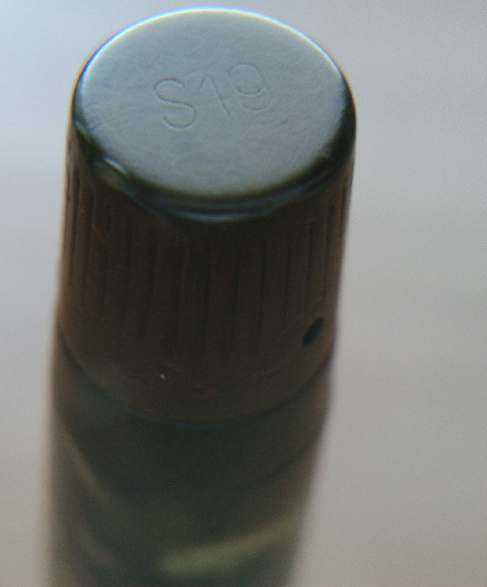è la sola che ho trovato in questa foggia: in tutte le altre S19 da me esaminate la scritta è risalente dal basso verso l'alto (a bandiera, con i caratteri ovviamente coricati sulla sinistra), oppure, per le produzioni streamlined successive, è discendente ma con le prime due lettere ("S" e "O") fuse insieme, come sul pennino.
