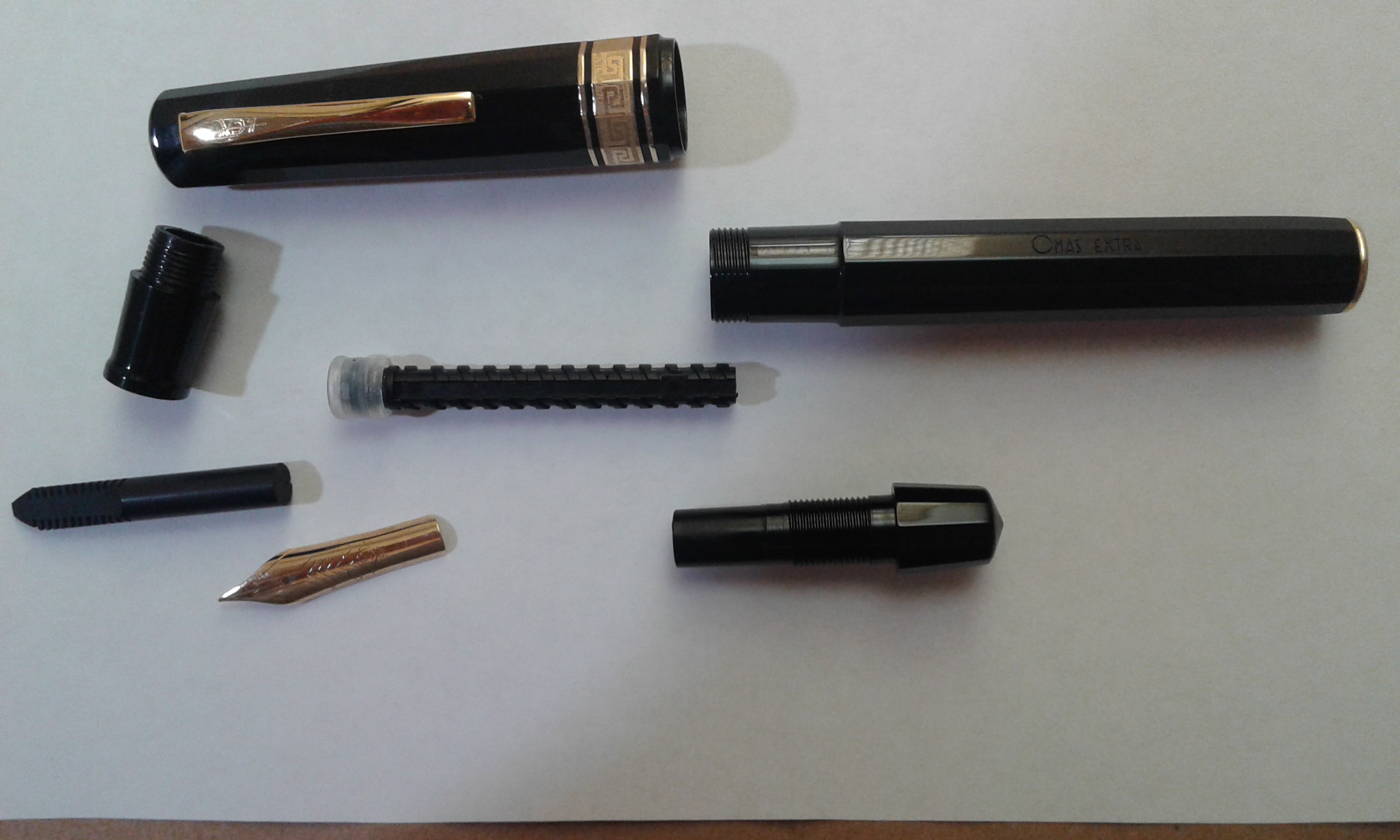 Ho questa Omas che mi è stata passata da uno zio che non può usarla più per l'età avanzata, sulla penna c'è scritto che è una Omas Extra ma in una cartoleria di Milano mi hanno detto che è un vecchio modello di Paragon. Siccome il pistone scorreva male la ho aperta, pulita bene e la ho lasciata due giorni in ammollo in acqua con una goccia di sapone per i piatti (ho imparato questa cosa grazie al vostro forum).