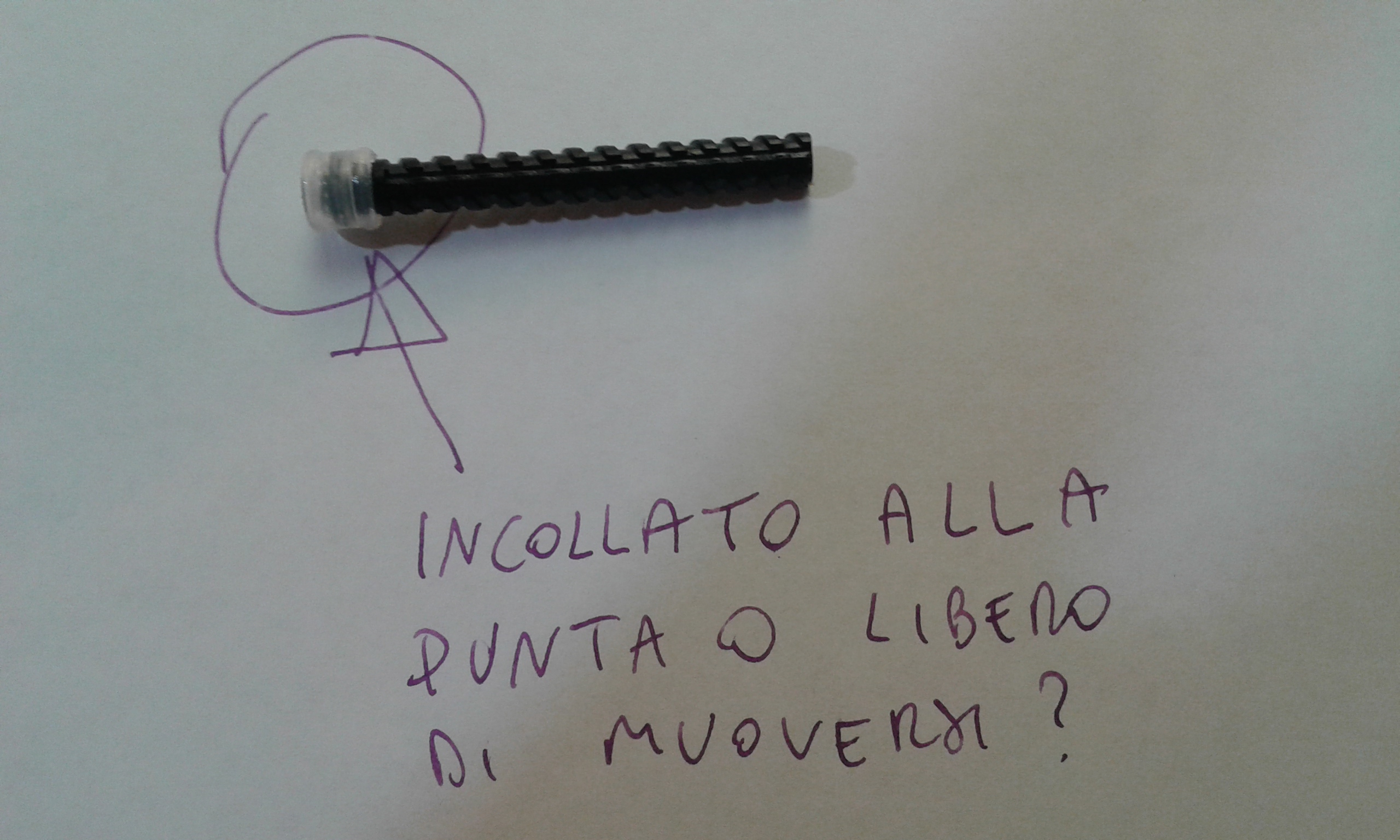 foto dell'asta con il gommino che, forse per eccessiva lubrificazione, facilmente ruota intorno al perno senza attrito