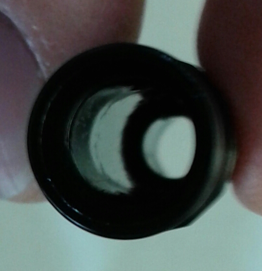 Comunque metto due foto dell'interno de corpo, prese dai due lati. Si vede una scanalatura, come un piccolo anellino sporgente all'interno del corpo ed io pensavo che fosse la guida e che fosse integra, probabilmente mi sbagliavo ed è già rotta. Quello che posso dire è che l'interno non è passante e cioè quella guida o pezzo di guida rotta bloccano a un certo punto lo scorrimento della guarnizione trasparente del cappuccio