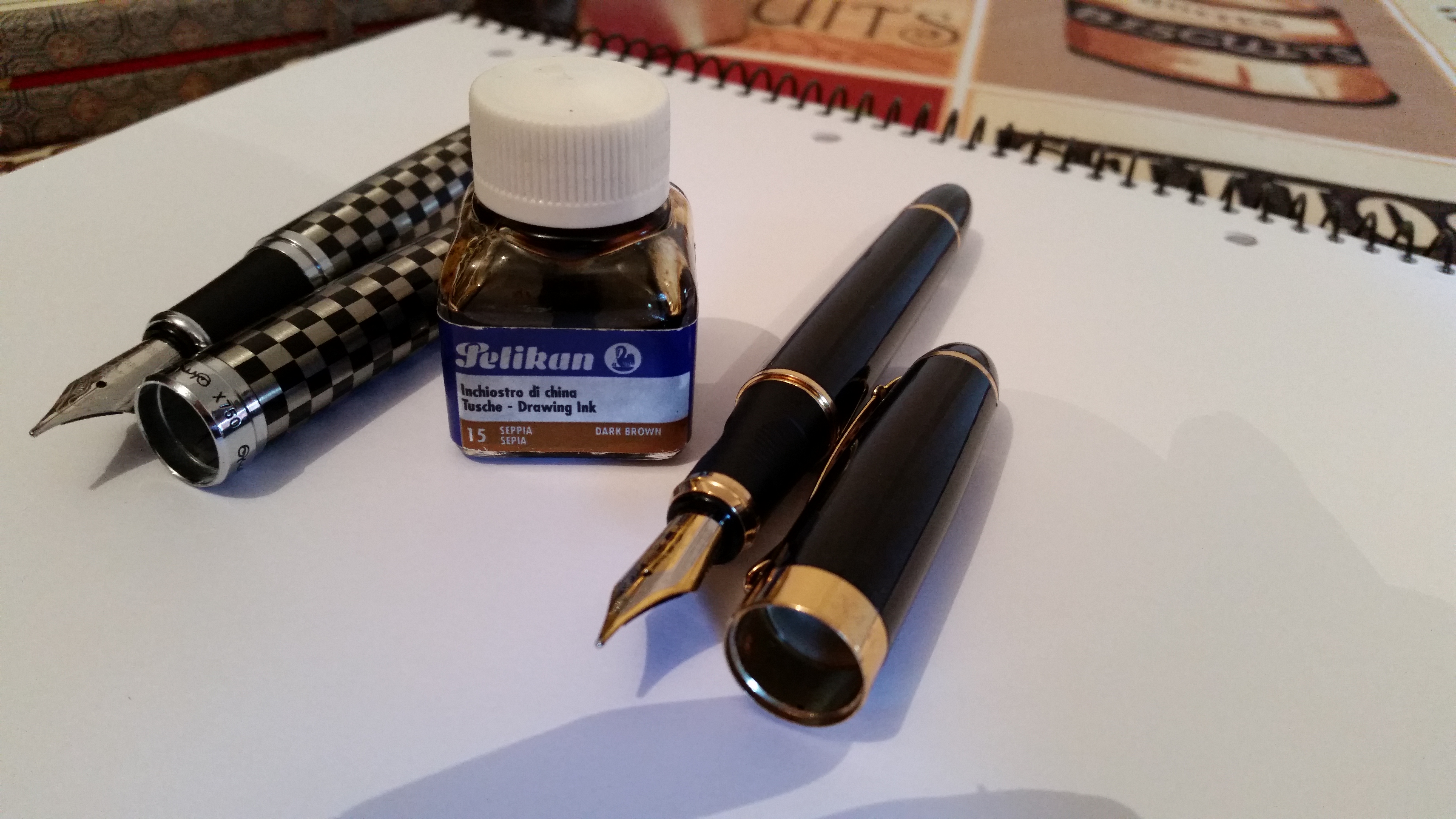 Purtroppo, da brava principiante, non ho fatto caso che questi inchiostri hanno un bel residuo sul fondo, d'altra parte erano "fermi" praticamente da dieci anni, quindi mi hanno di fatto intasato entrambe le penne che ho utilizzato.