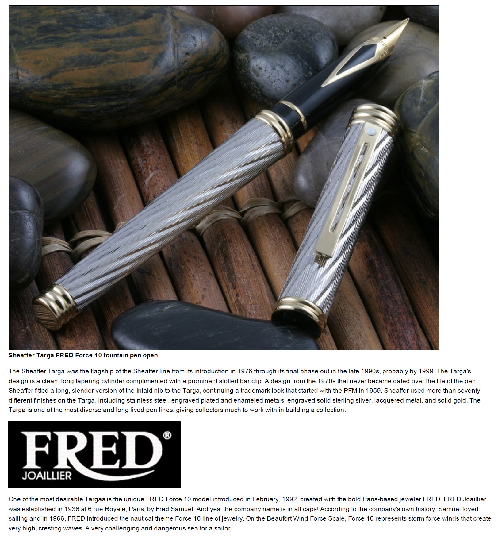 Grazie Max...in effetti hai proprio ragione, in quanto Fred è il nome di un noto gioielliere parigino che ha realizzato il disegno di questa Sheaffermaxpop 55 ha scritto:Molto bella e singolare, sembra quasi una targa vestita da qualche orafo .