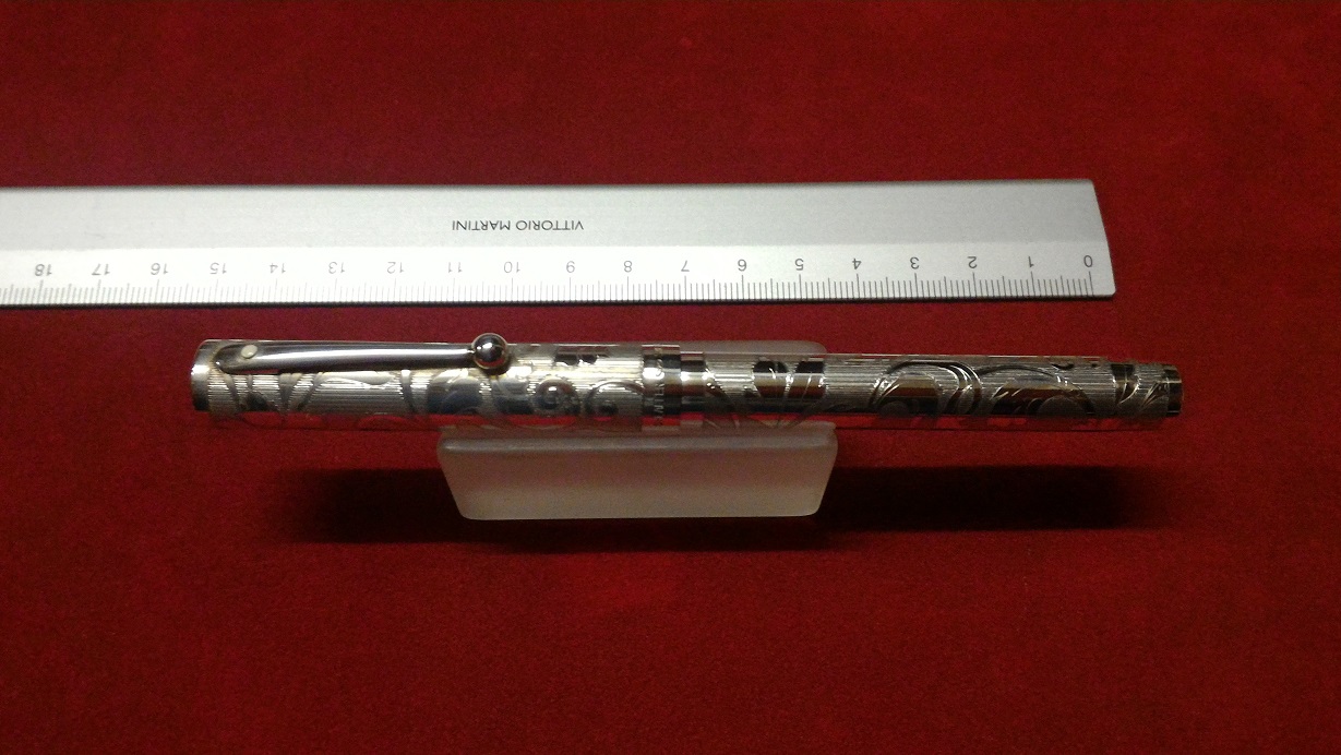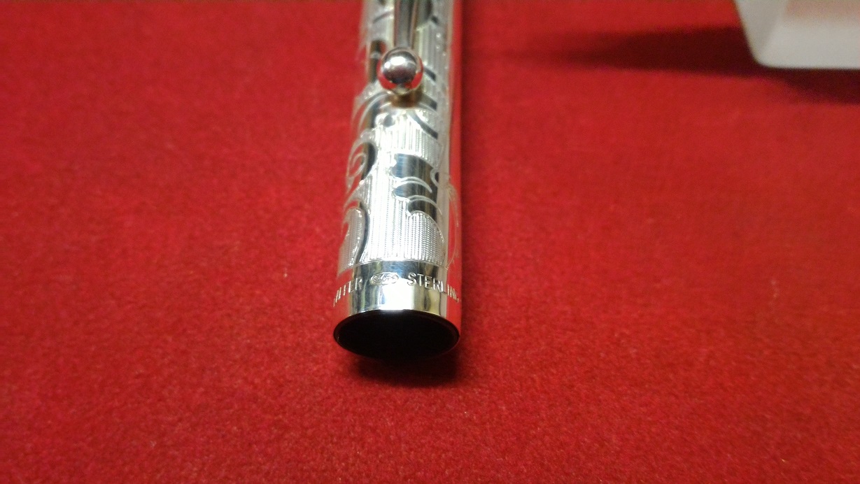 Questa coppia di Sheaffer in argento massiccio e argento laminato oro è un altro modello particolare della Casa americana. Anche in questo caso la cesellatura è fatta a mano da orafi inglesi.