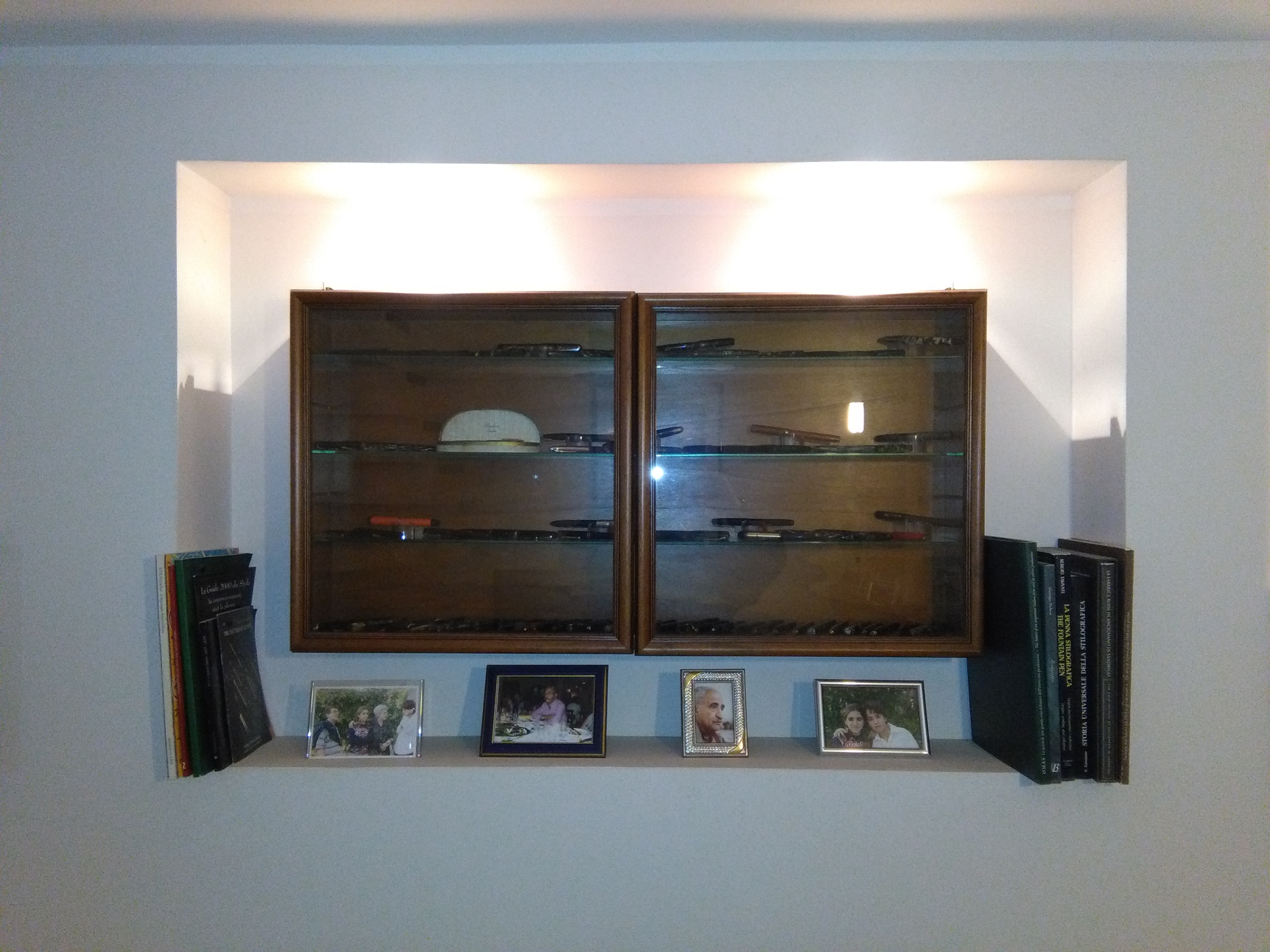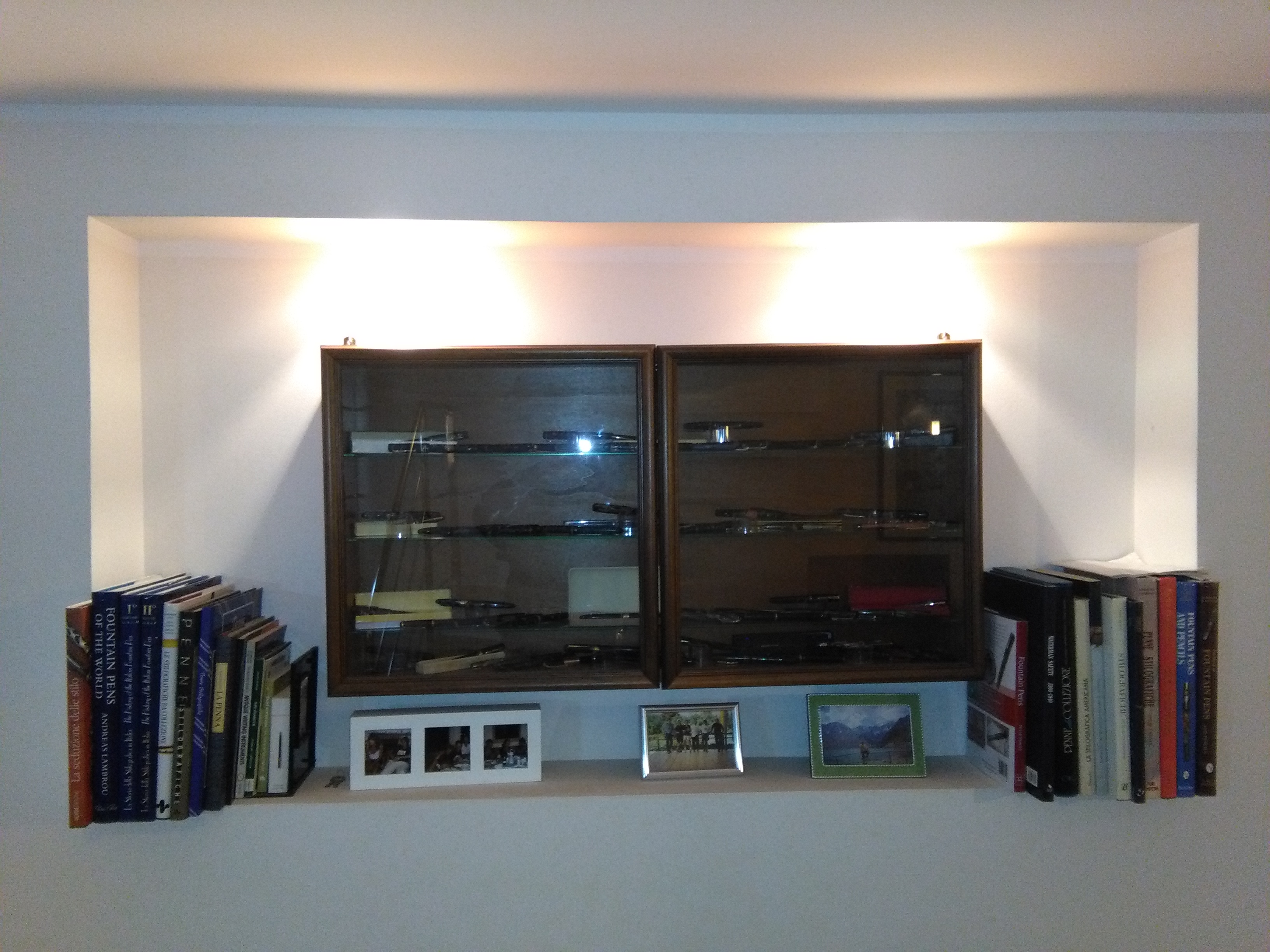 Una veduta generale di come sono sistemate le bacheche nelle nicchie e della mia biblioteca