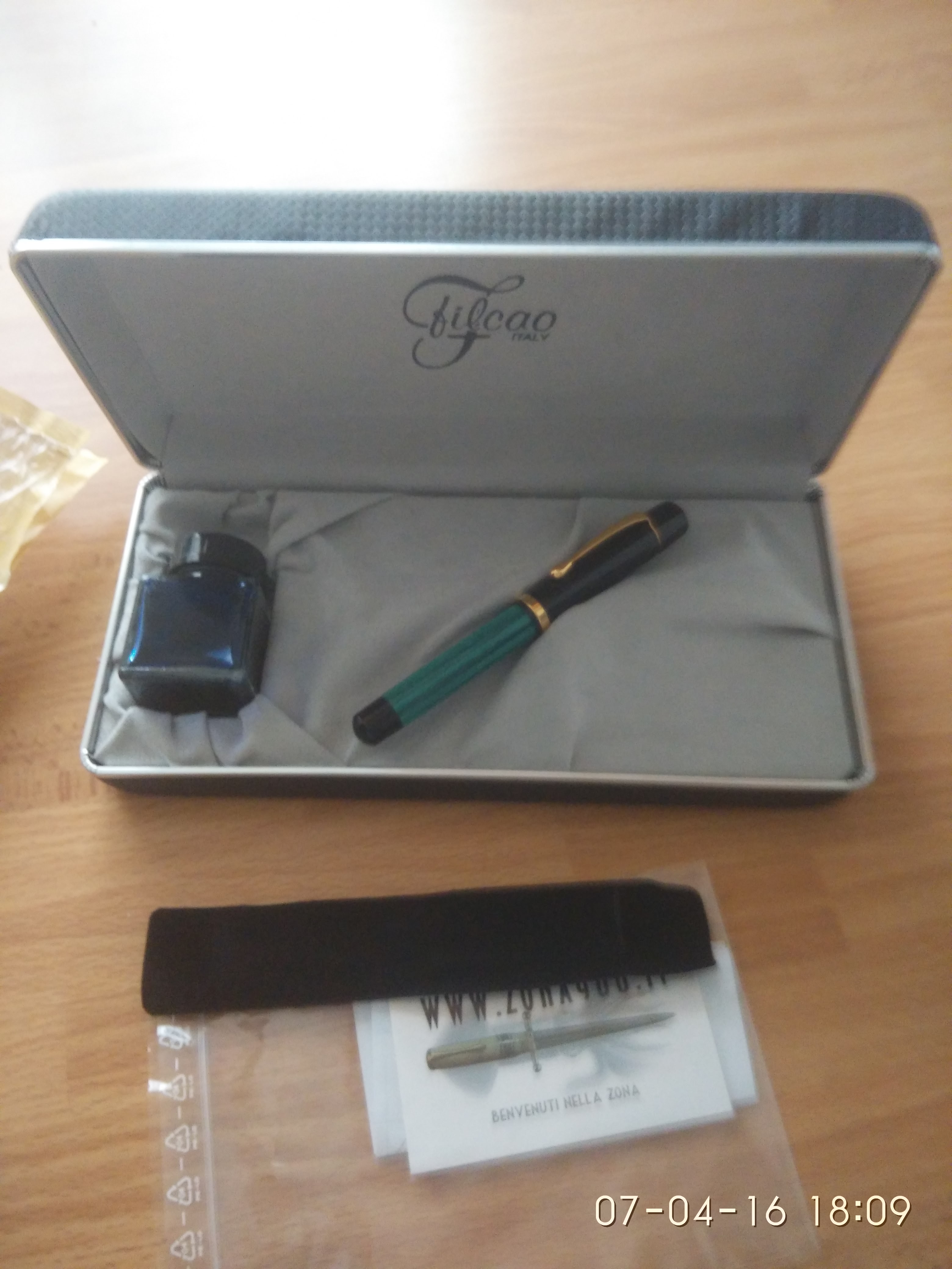 La penna è una Filcao modello Silvia, (stranemente sul forum non ci sono recensioni di questo produttore) con sistema di caricamento a pulsante, dopo qualche giorno di test, posterò una breve recensione. Con l'occasione vorrei fare qualche ricerca sul Produttore, e magari aggiungerla alla recensione.