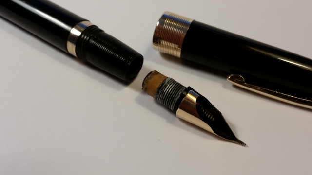 2) la sezione non si svita appena sopra l'anellino dorato, come visto in altri post, ma si svita appena sotto il pennino (e sembrerebbe da nessun'altra parte)