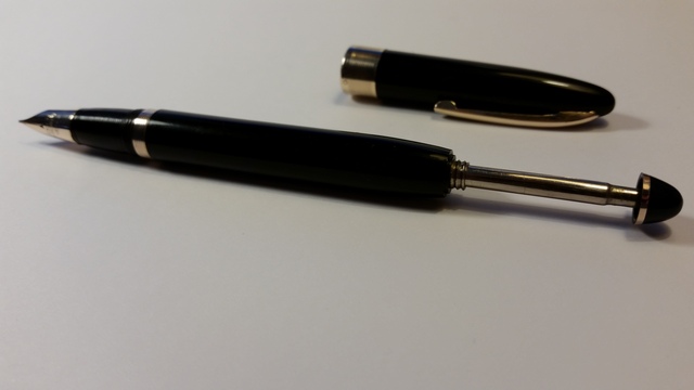 Il sacchetto, come ho detto, è da cambiare e la clip è leggermente inclinata, ma tutto sommato è una penna meravigliosa, che non vedo l'ora di testare!! Il caricamento pneaumatico è davvero affascinante, molto simile a quello sulle Touchdown delle Sheaffer. Vi allegherò qualche foto per rendere meglio l'idea: