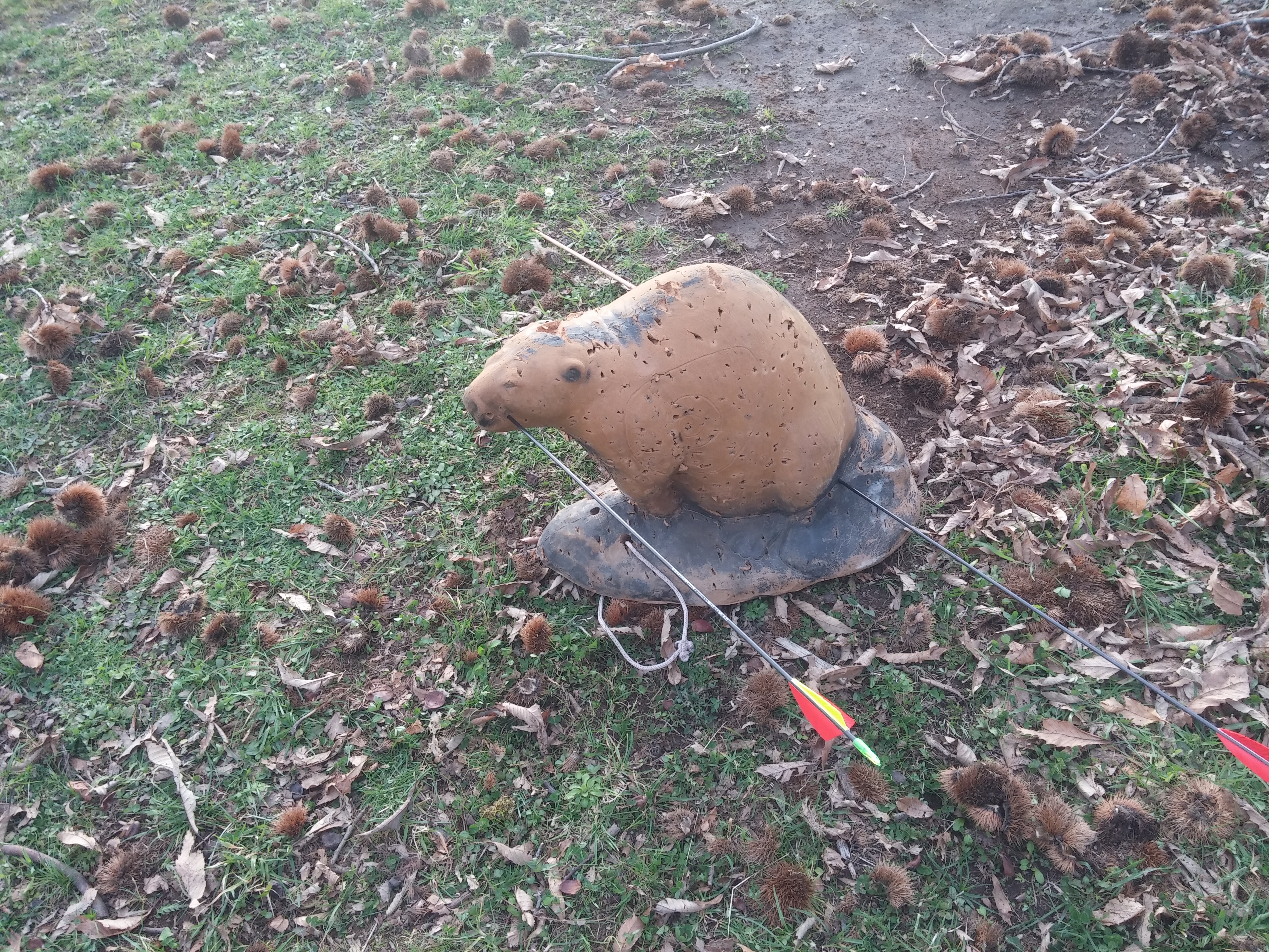 Ciro tira con l' arco insieme a me, deve stare attento, vi dirò è un bel bersaglio ed anche facile per le dimensioni.