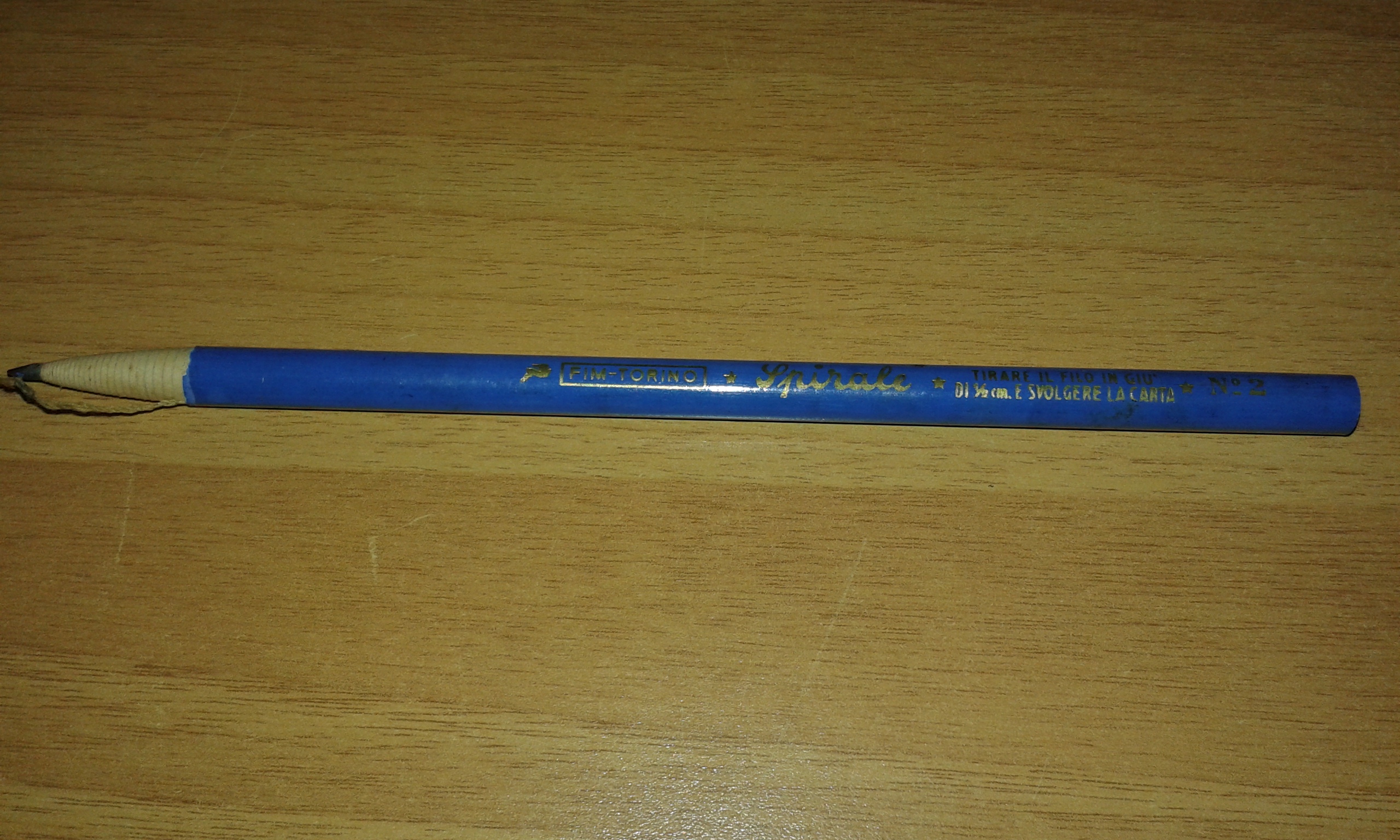 Reperita in mercatino, una matita a spirale "FIM-TORINO", non aveva bisogno di un temperamatite.