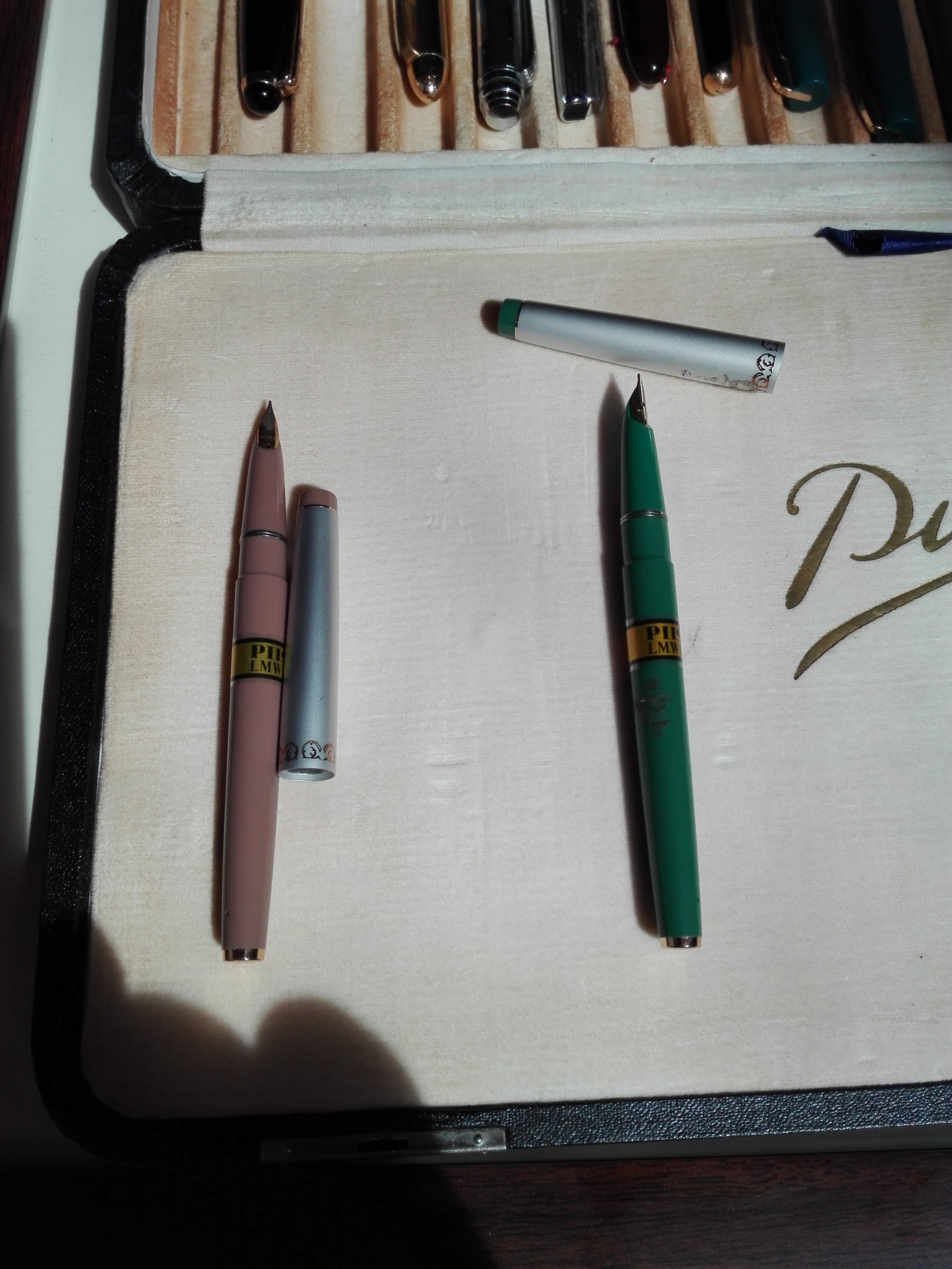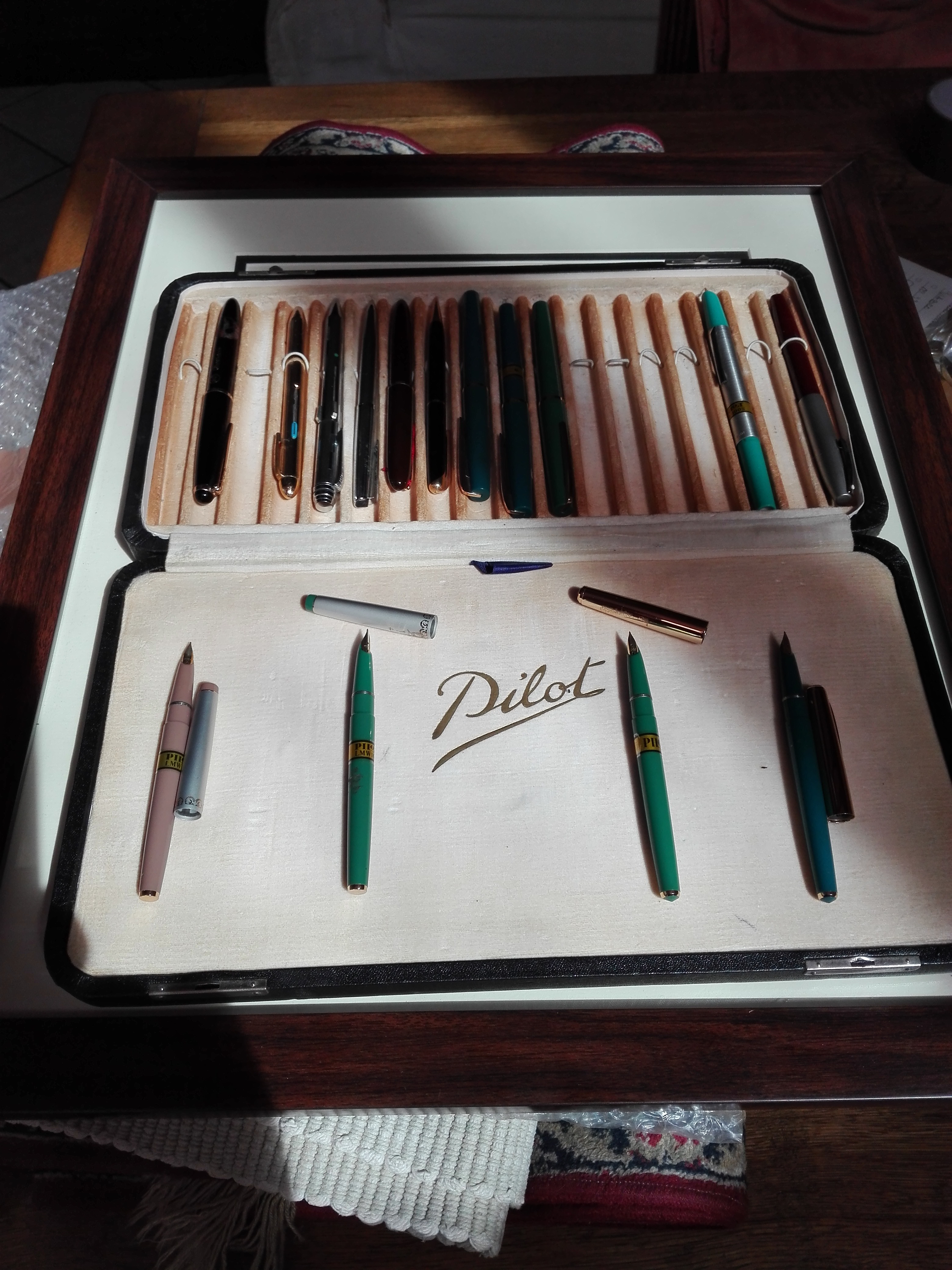 Ho ritrovato colezzione di vecchie Pilot con scatola originale porta penne Pilot , invio alcune foto per identificarle , sè qualcuno è particolarmente afferrato su questo mondo mi scriva , grazie Roberto .