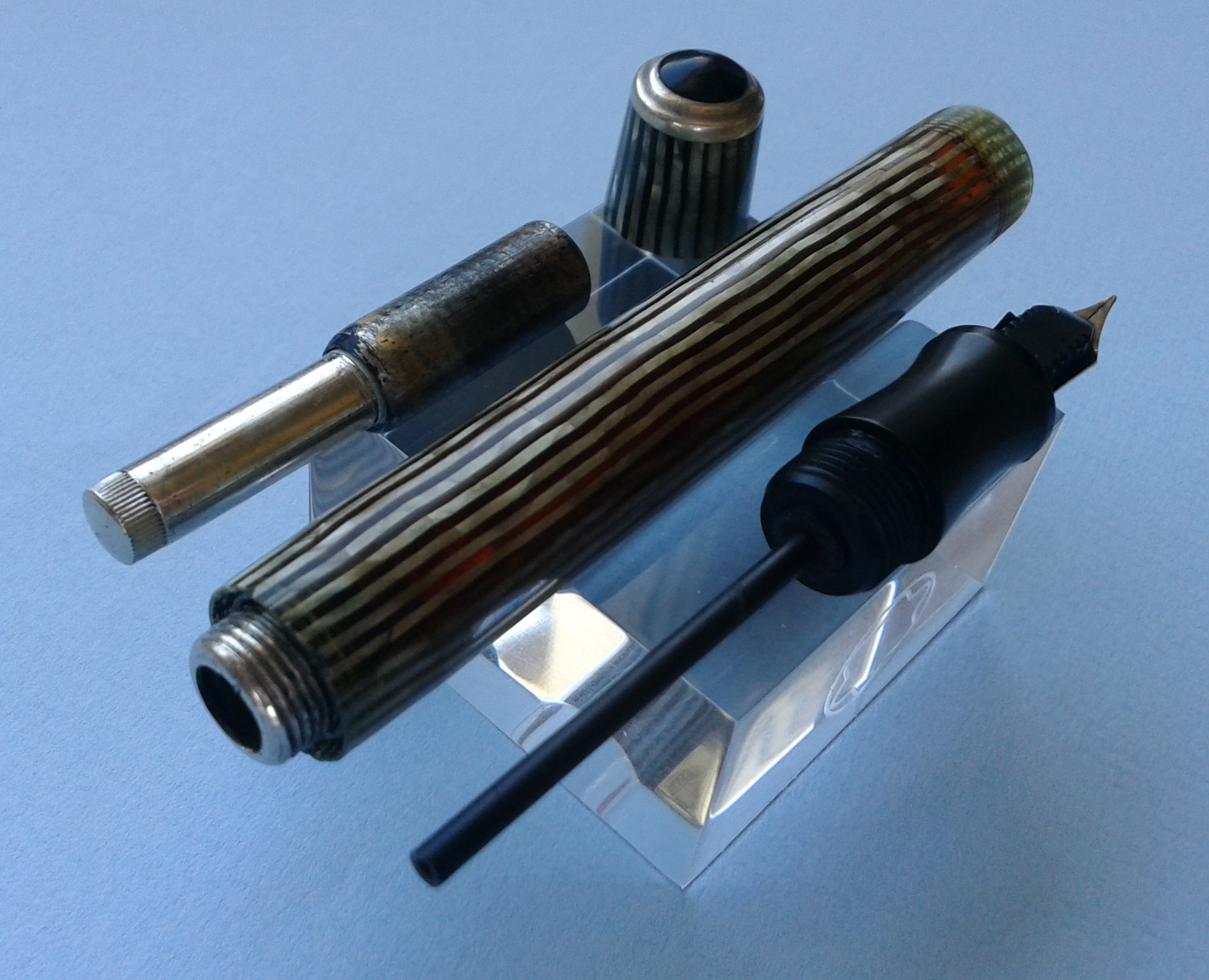 Per una cifra puramente simbolica (inferiore a quella della ridoratura della clip :mrgreen: ) ho potuto verificare che quello che sembrava ferro arrugginito era ottone lucente, ciò che sembrava acciaio era in realtà platino, quello che sembrava inchiostro ammuffito era, beh questo sì, inchiostro ammuffito... :lol: