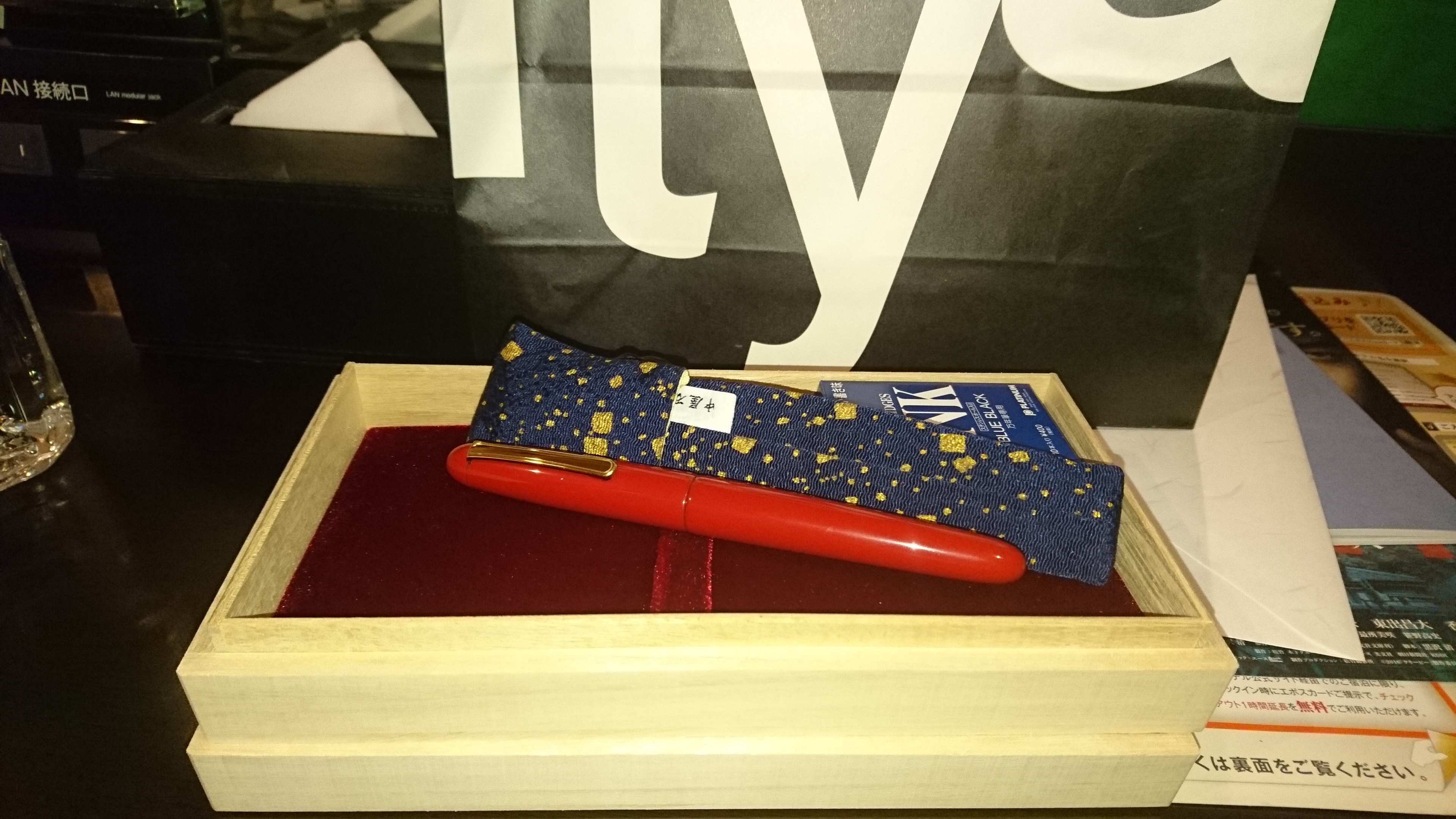 Avevo scelto una laccatura arancione Arai-shu, ma mentre mi cambiavano il pennino ho richiamato la commessa e sono passato alla laccatura rossa Shu.