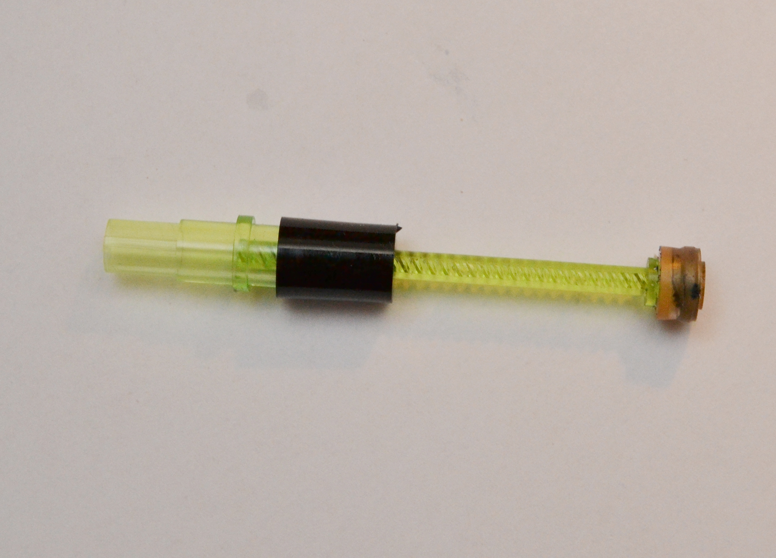 Per smontare il pistone una volta smontata la sezione si ruota il fondello fino allo sgancio, continuando si sviterà totalmente il fondello ed uscirà la parte dove si avvita la vite senza fine del pistoncino e un cilindretto che funge da blocco interno al fusto e fa anche da da guida per la vite del pistoncino.