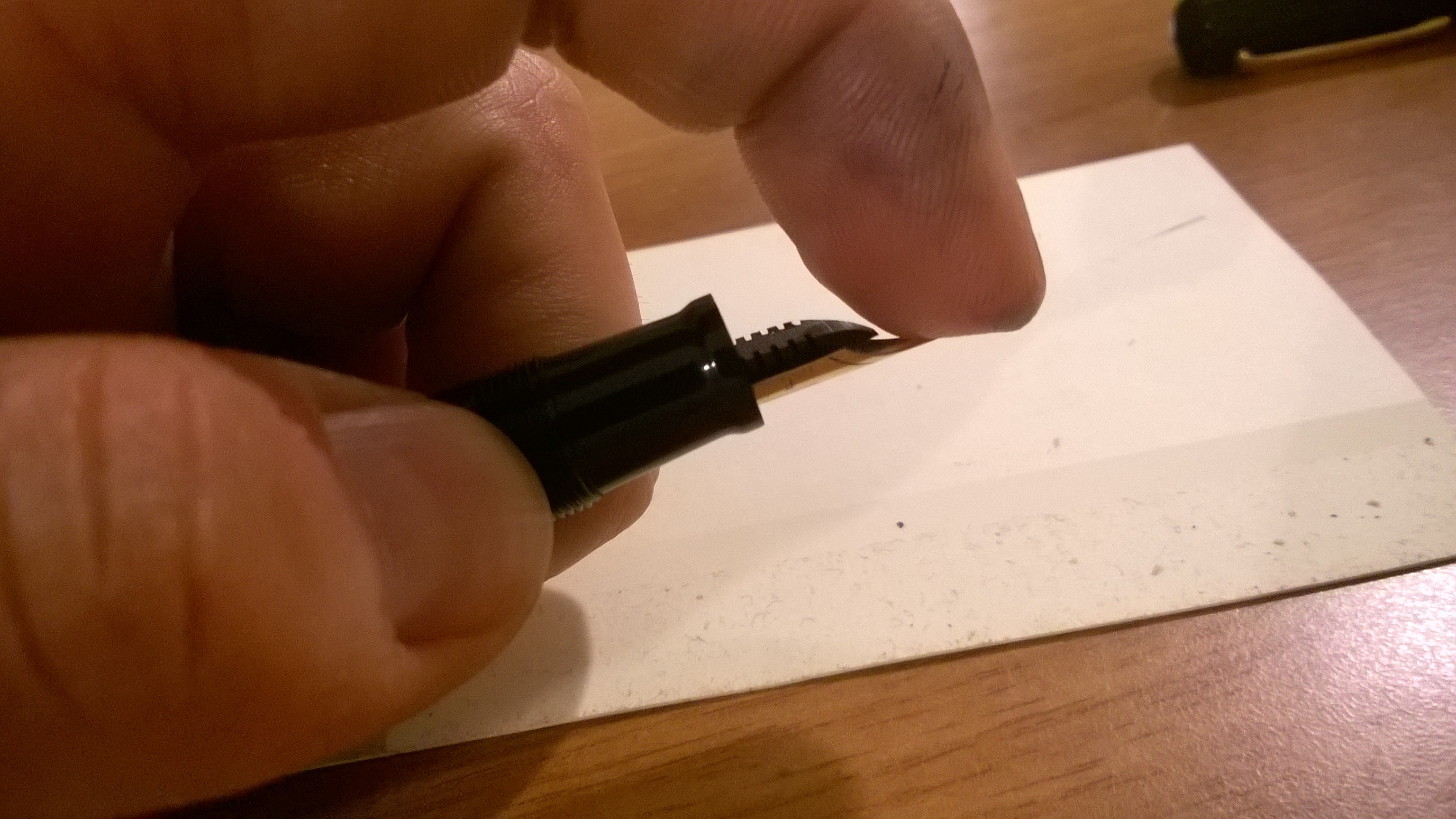 l'effetto è ben visibile in foto: il pennino non aderisce all'alimentatore, ho provato diverse posizioni dell'accoppiamento tra pennino e alimentatore ma la situazione non migliora