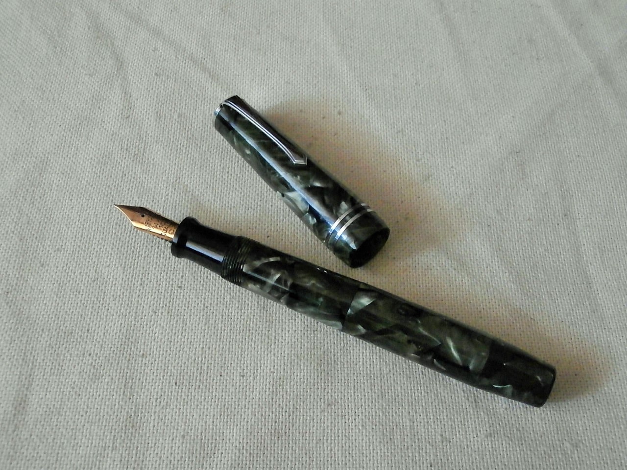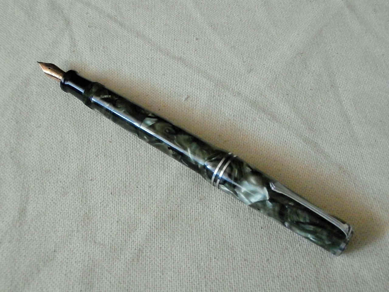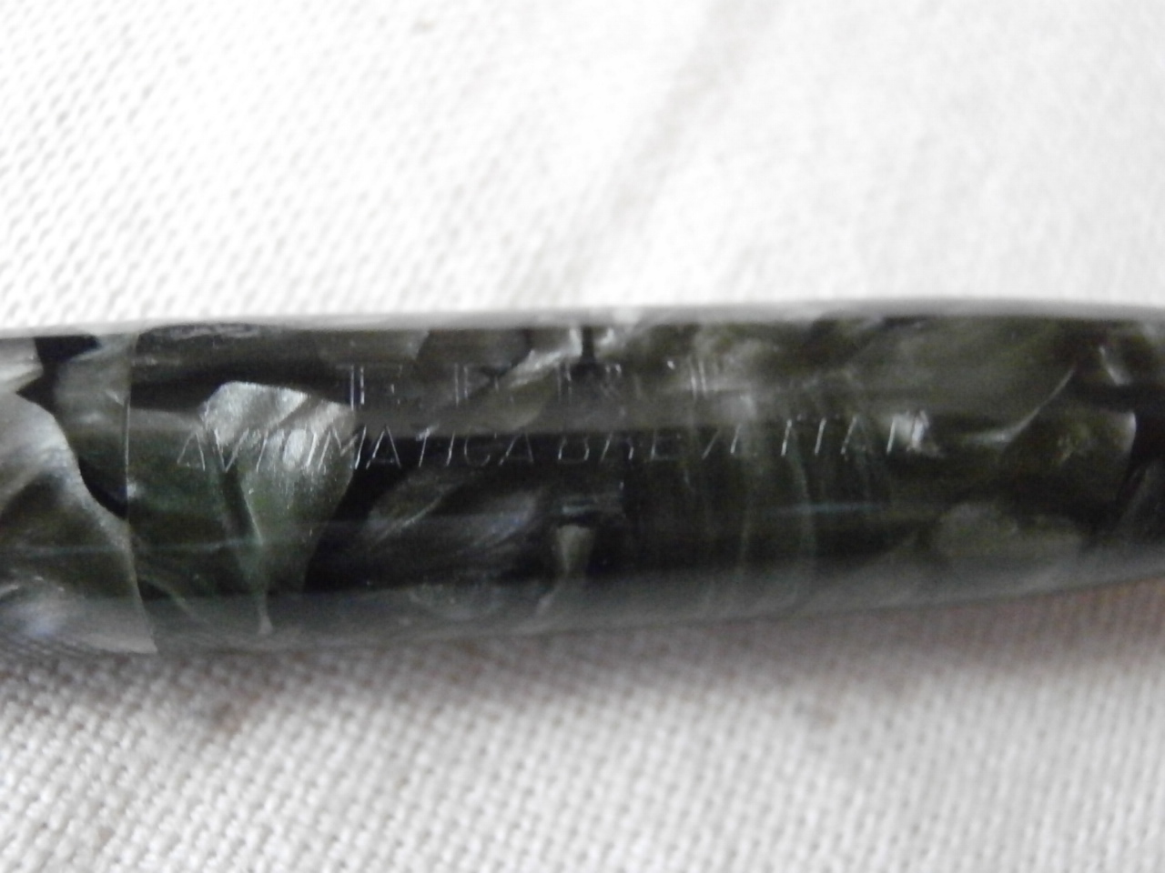 1- questa sembra nuova di pacca..... non ci sono segni di uso, celluloide e finiture perfette, scritta leggibilissima manca il riferimento al brevetto presente sulla B&P. Il serbatoio, anche se inutilizzabile perchè la gomma è ormai seccata, è come se fosse appena installato.
