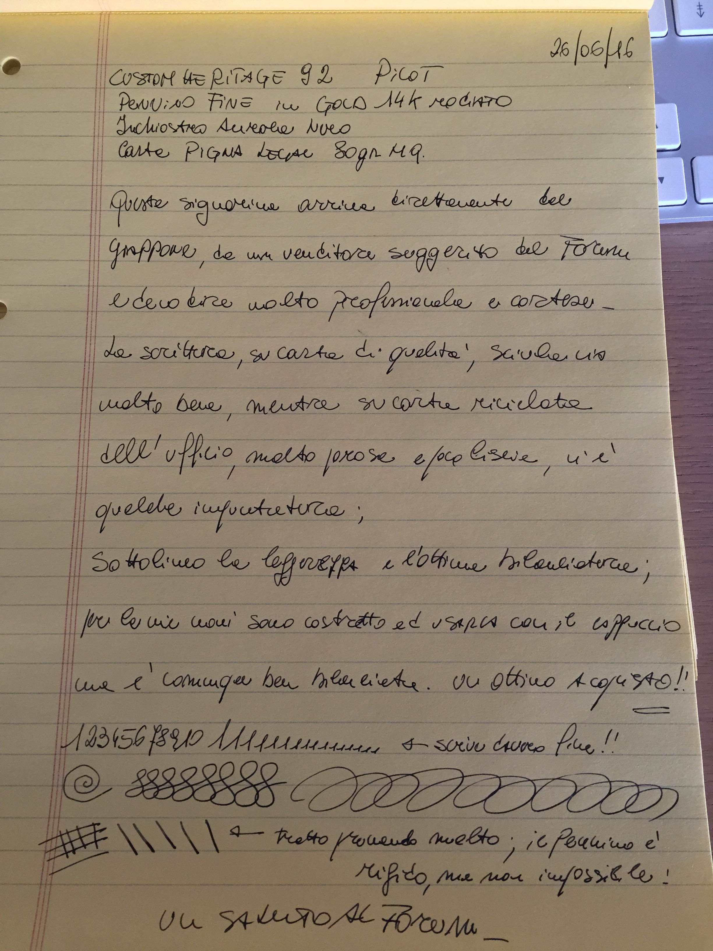 Ecco, quel pennino mi piace ancora di più: a parità di tratto è proprio vellutato, scorre in modo impressionante. Senz'altro il miglior pennino che abbia mai provato.
