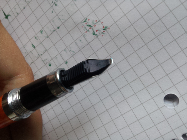 Era un semplicissimo stainless steel a punta media di una penna economica rimasta inutilizzata da tempo. Ho deciso di dargli un po' di carattere e l'ho fatto diventare un bello Stub con un tocco di pendenza in modo da farlo, molto leggermente, obliquo..visto che non ne avevo mai provato uno me lo son fatto in casa