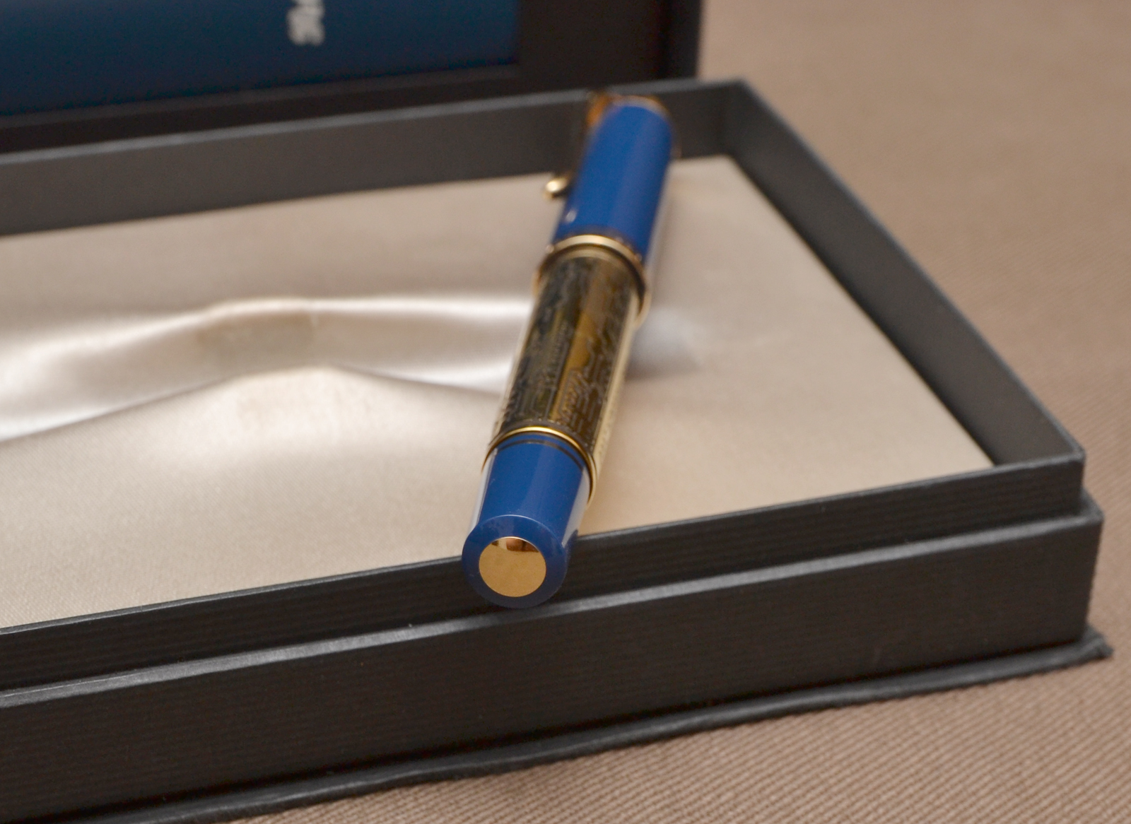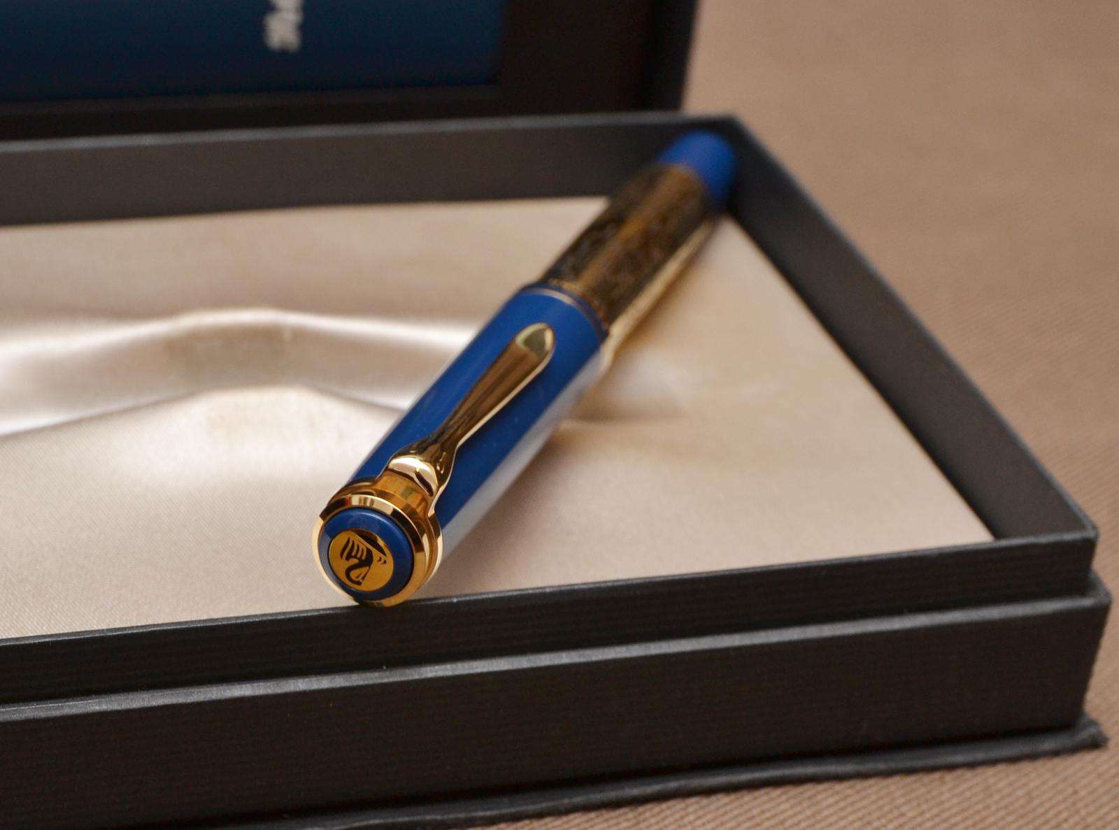 Praticamente è identica alla Toledo ma di dimensioni più importanti, è stata fatta sulla base della 800, 14 cm di lunghezza, in ottima resina colore tra l'azzurro ed il blu, rivestimento del serbatoio e dei fregi in argento 925 placcato oro.