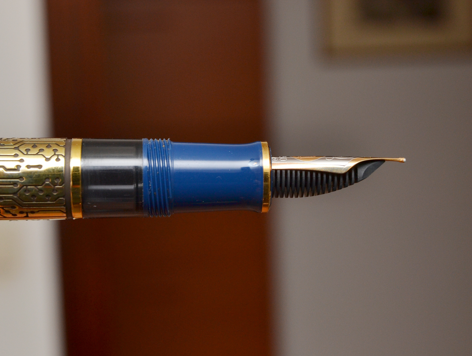 Bella penna :thumbup: ...e poi il fusto che ricorda i circuiti stampati fa troppo "nerd"...sto rivalutando la Pelikan :think: