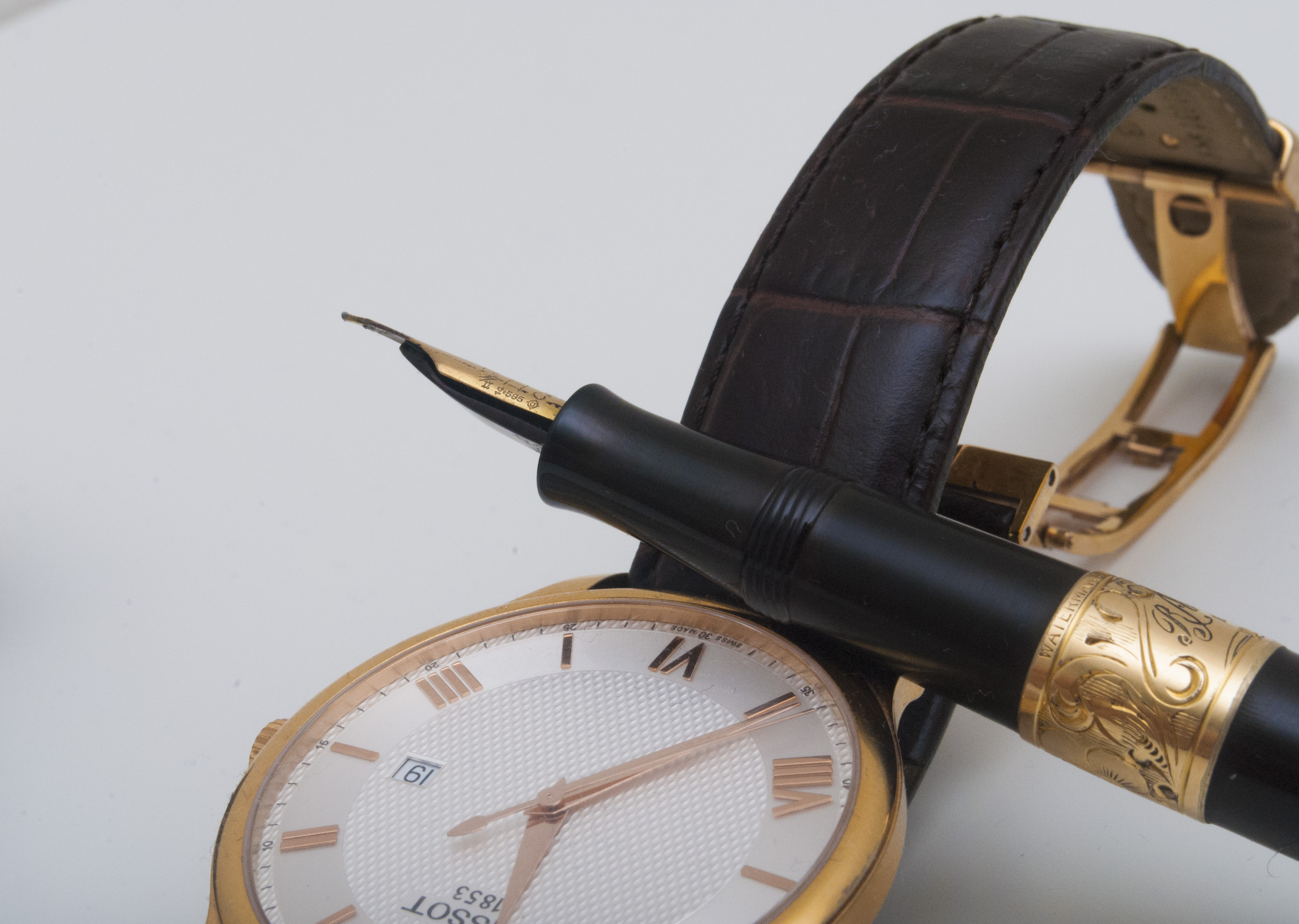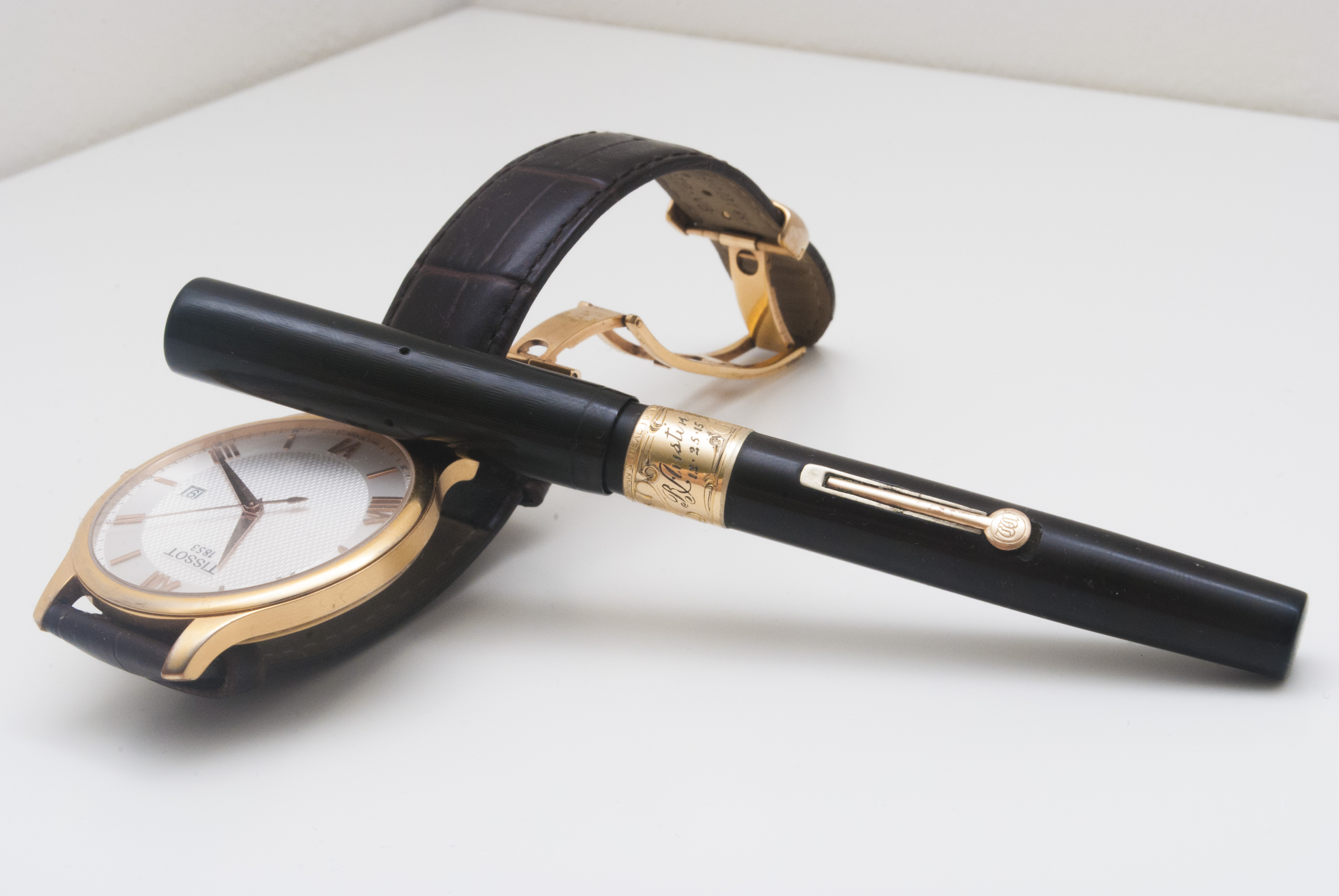 La penna in realtà non sta tanto male, il marrone si vede solo con una luce molto forte e, visto che è molto consumata non penso valga la pena trattarla col fornet. Poi visto come si abbina col mio orologio che pure ha il cinturino marrone scuro?