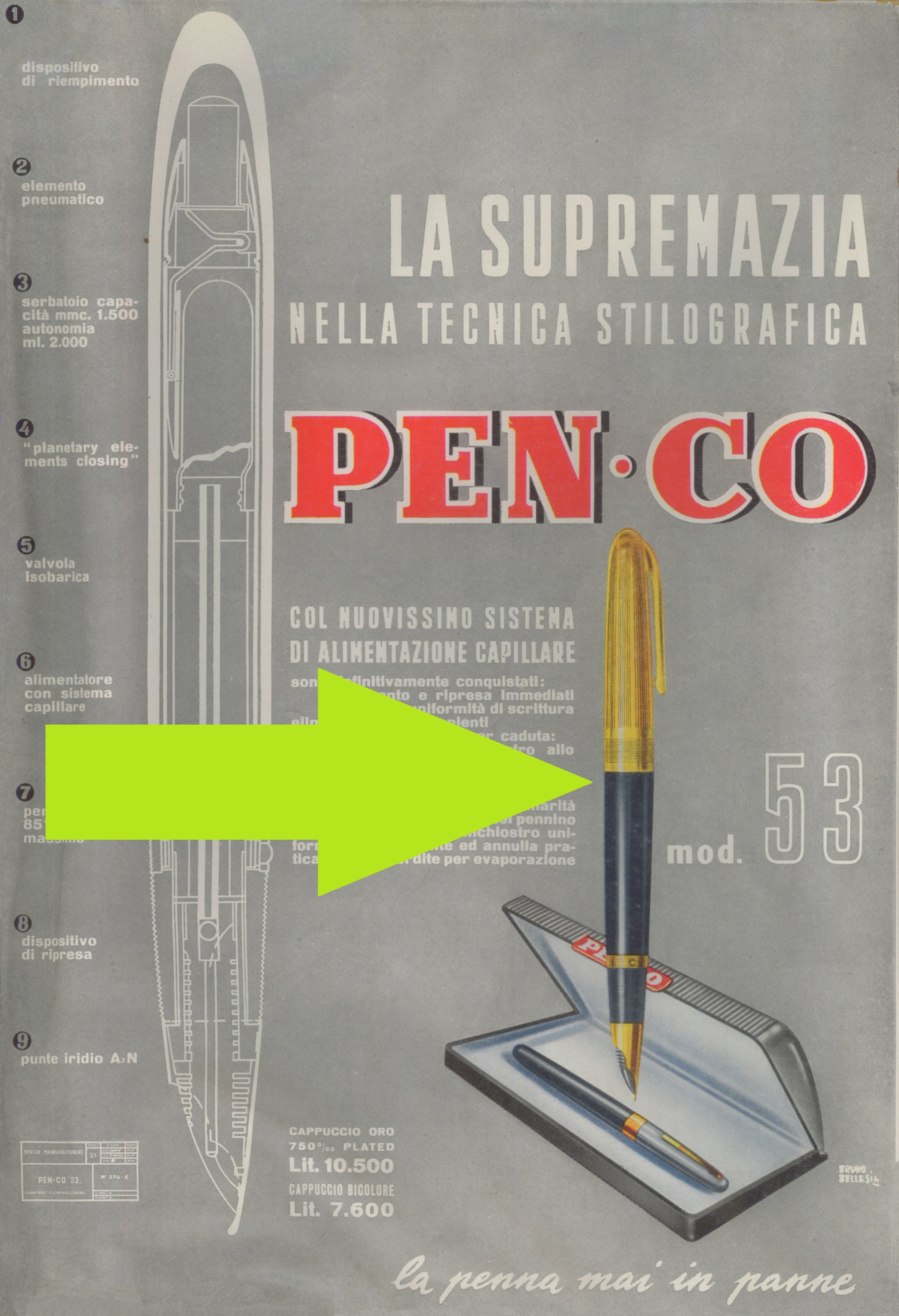 Nel 1952 l'azienda immise sul mercato la linea di penne PEN·CO 53, una penna dal design ogivale, serbatoio in celluloide, cappuccio in metallo e pennino tubolare, con chiusura a vite. Se il tutto non suona troppo nuovo è probabilmente perché vi sono venute in mente le Sheaffer triumph, alle quali la Pen-Co si è chiaramente ispirata dal punto di vista del design.