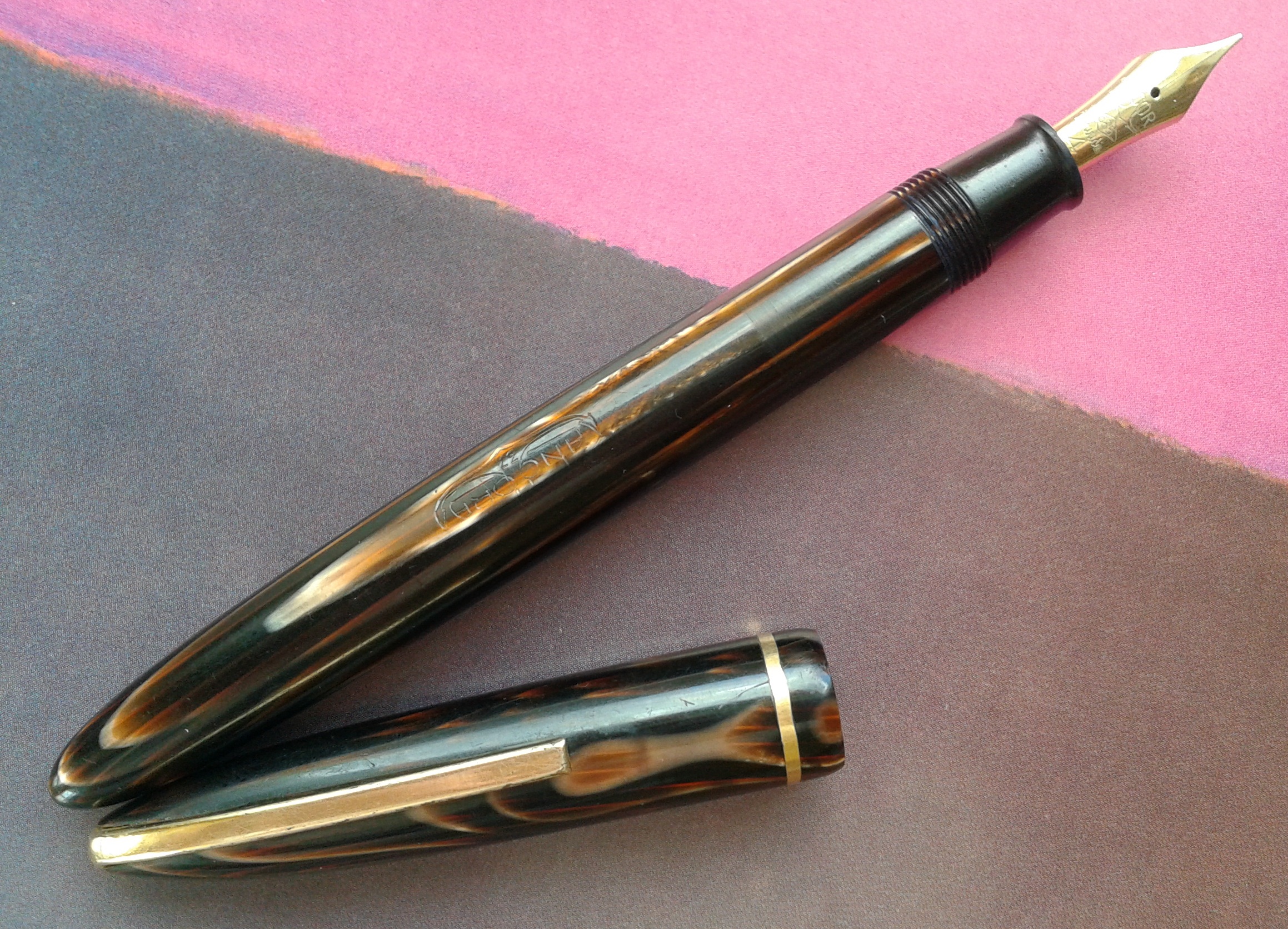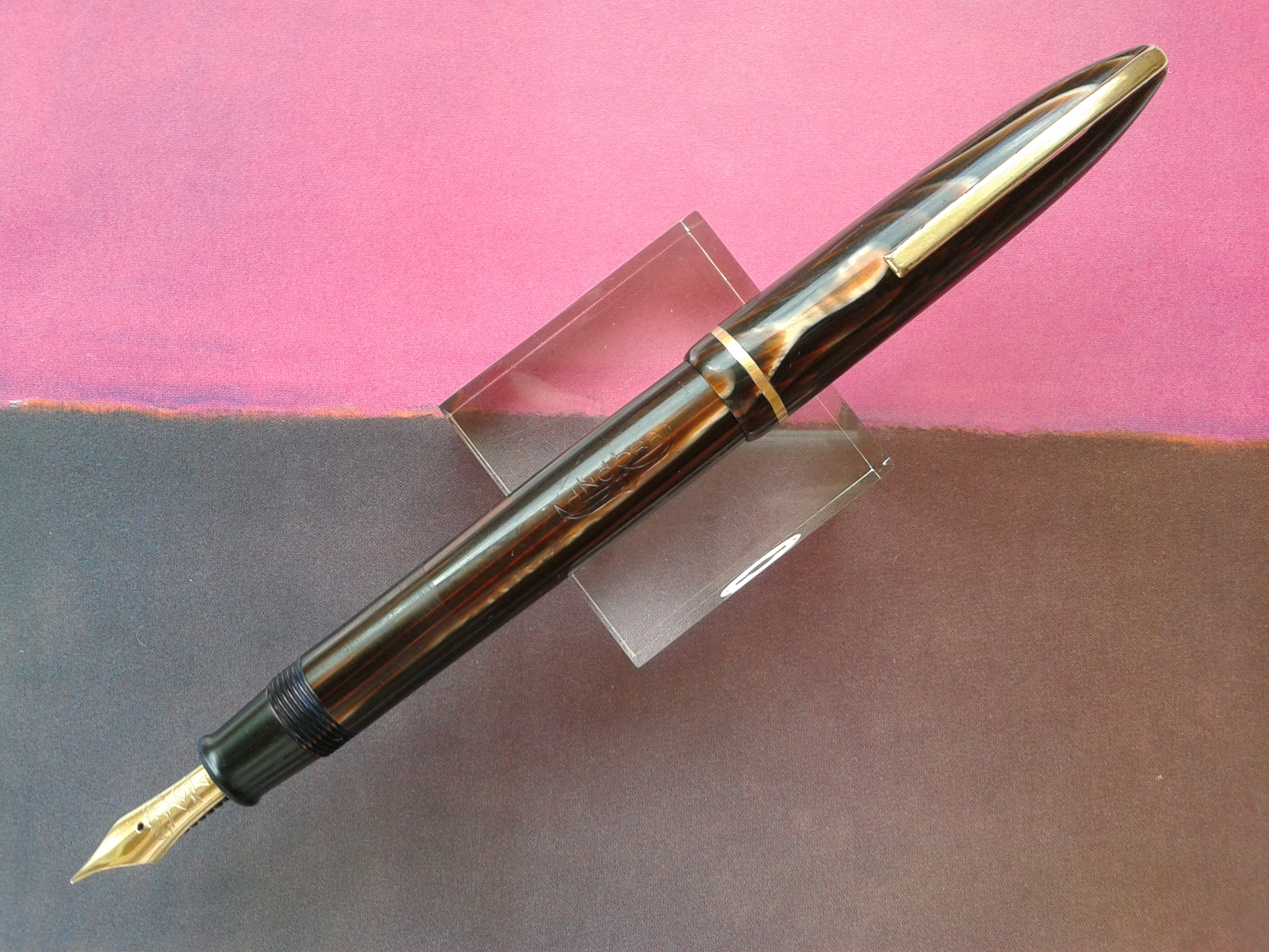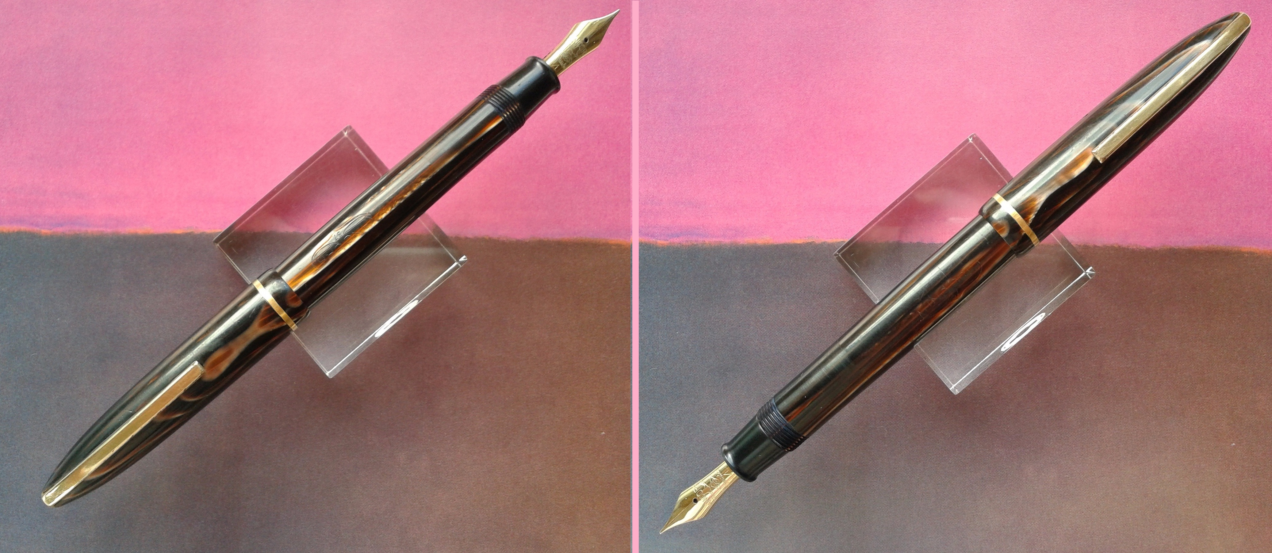 Sul finire degli anni ‘40, a II Guerra Mondiale da poco terminata, anche in Italia come nel resto del mondo la stilografica andò rapidamente abbandonando quelle forme che erano divenute mature e tradizionali per assumere linee aerodinamiche sempre più accentuate: lo stile streamlined (affusolato) esperito dalla Sheaffer Balance quasi vent’anni prima nel lontano 1929 (che aveva comunque visto l’adesione all’idea di modelli straordinari ma poco compresi quali l’Aurora Superba), fu infine adottato da quasi tutti i Produttori italiani pressoché contemporaneamente (come era avvenuto ed ancora avverrà per le tendenze stilistiche o tecniche più profondamente innovative).