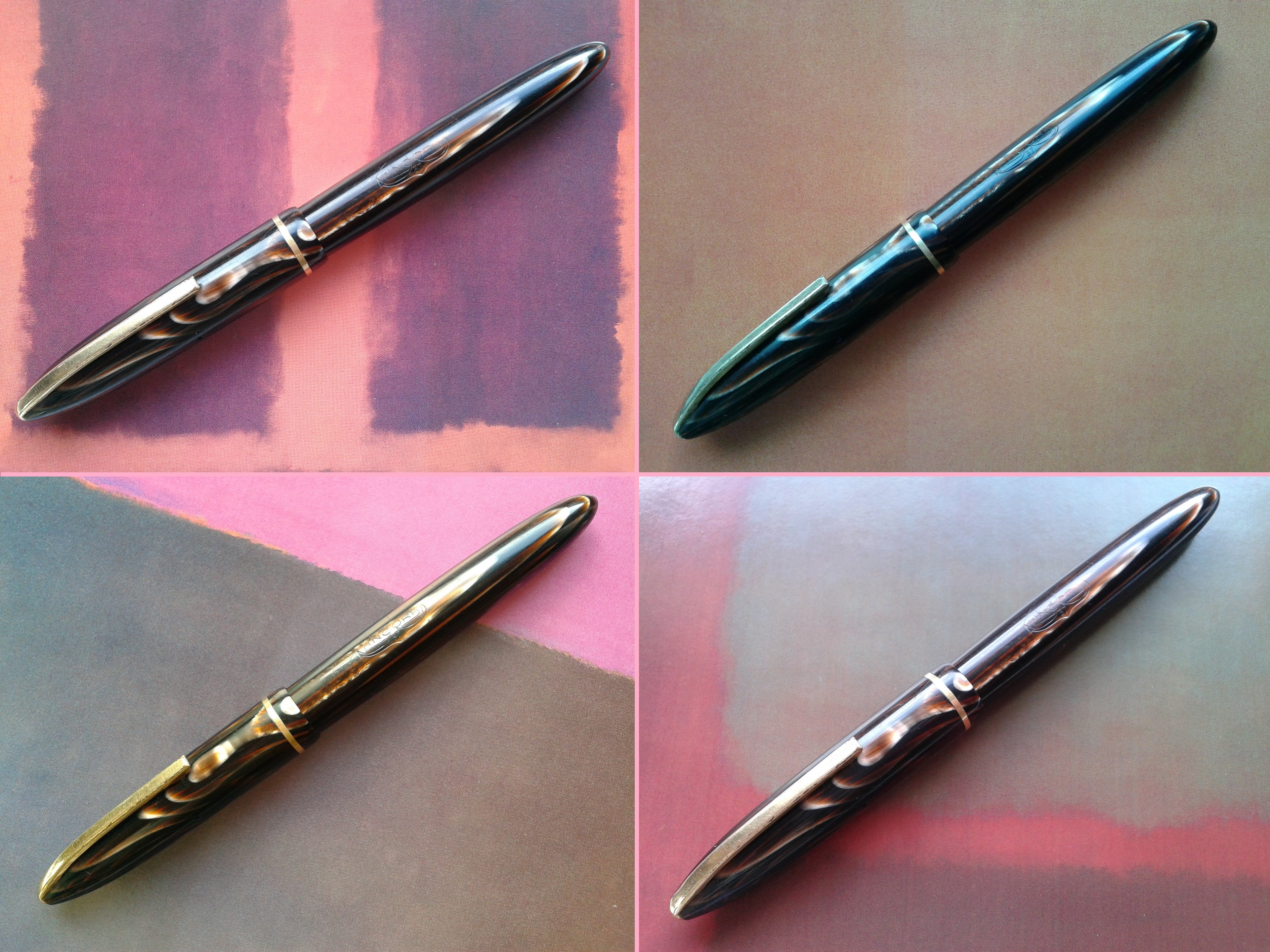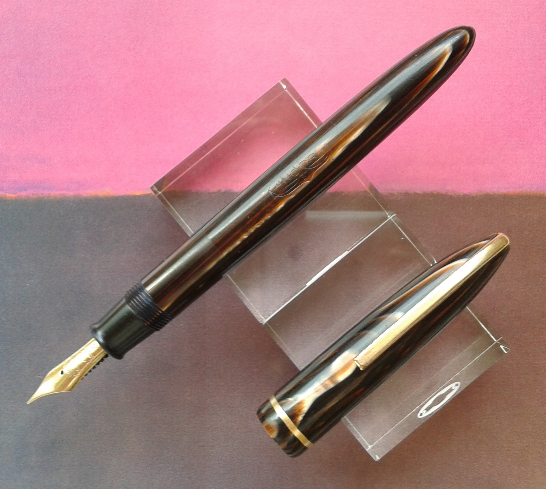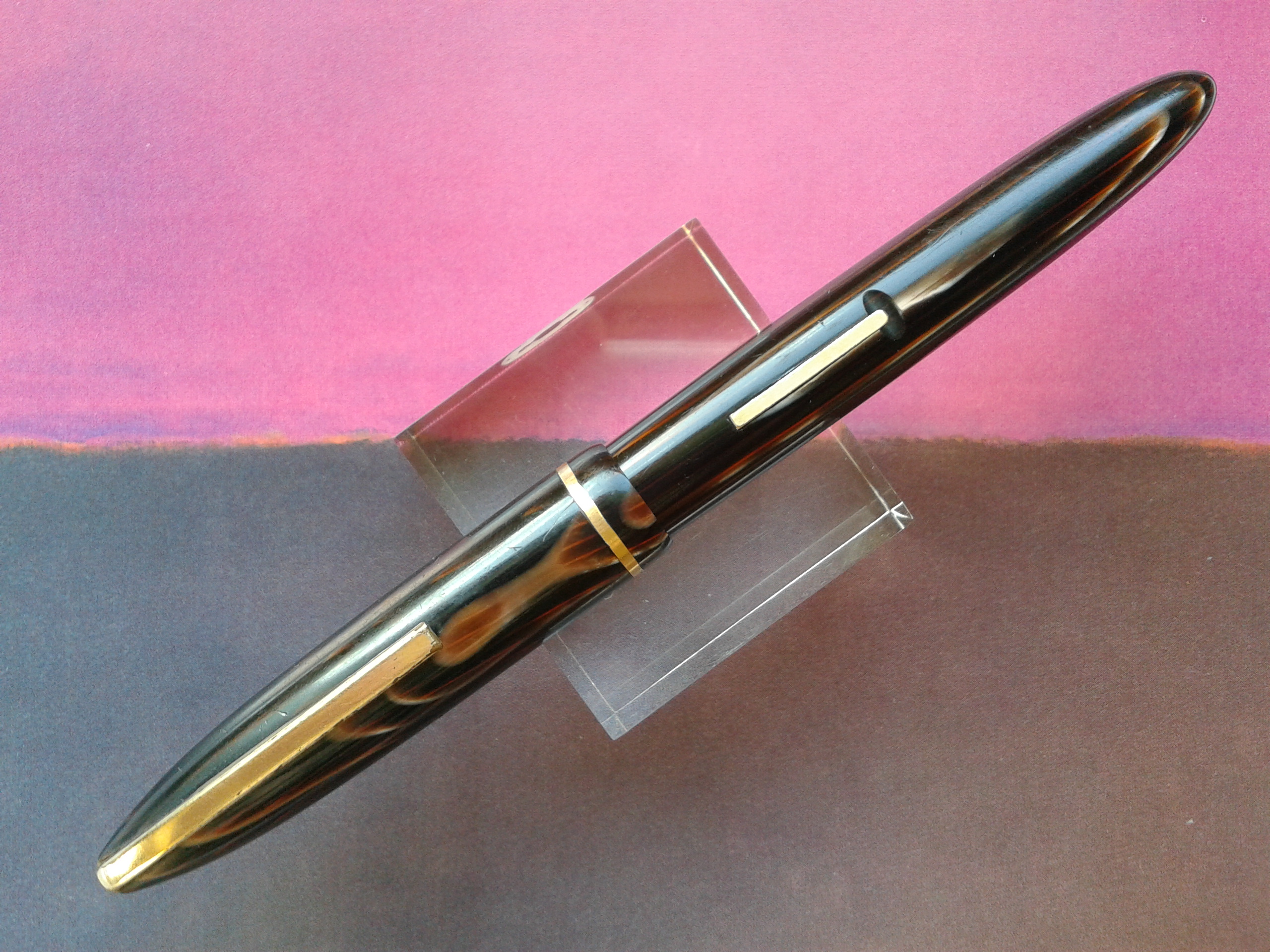 Sul finire degli anni ‘40, a II Guerra Mondiale da poco terminata, anche in Italia come nel resto del mondo la stilografica andò rapidamente abbandonando quelle forme che erano divenute mature e tradizionali per assumere linee aerodinamiche sempre più accentuate: lo stile streamlined (affusolato) esperito dalla Sheaffer Balance quasi vent’anni prima nel lontano 1929 (che aveva comunque visto l’adesione all’idea di modelli straordinari ma poco compresi quali l’Aurora Superba), fu infine adottato da quasi tutti i Produttori italiani pressoché contemporaneamente (come era avvenuto ed ancora avverrà per le tendenze stilistiche o tecniche più profondamente innovative).