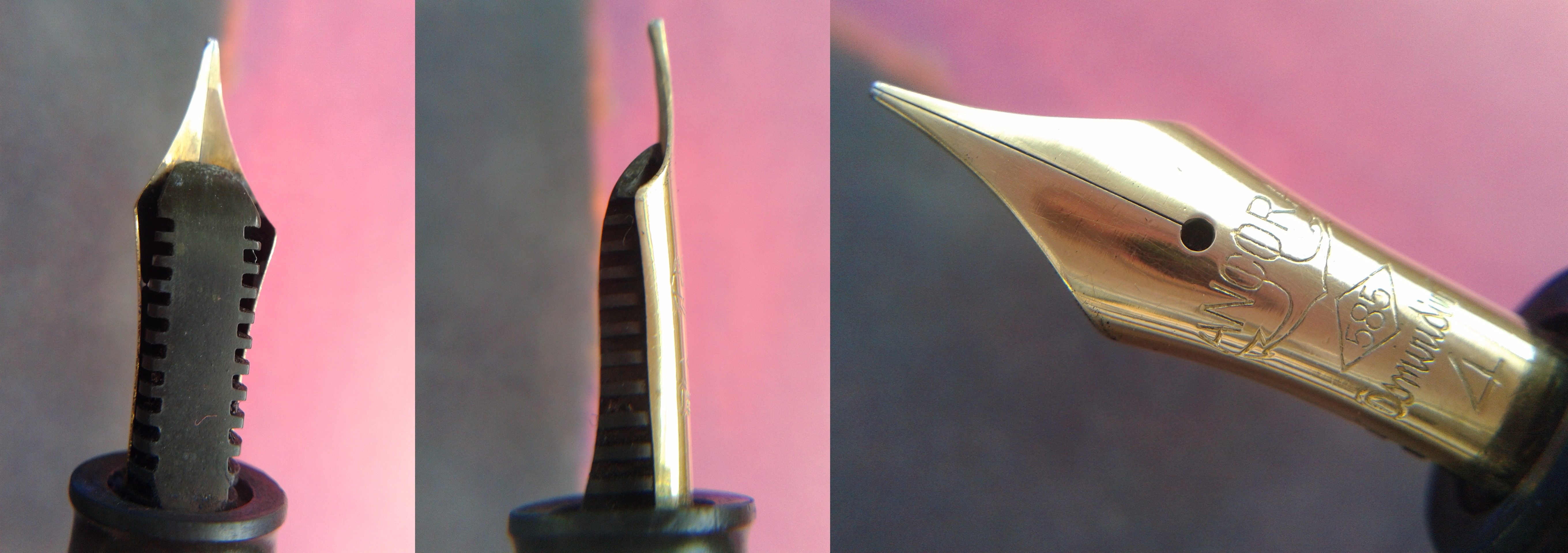 Il pennino, in oro 14 Ct. con foro circolare, reca inciso: