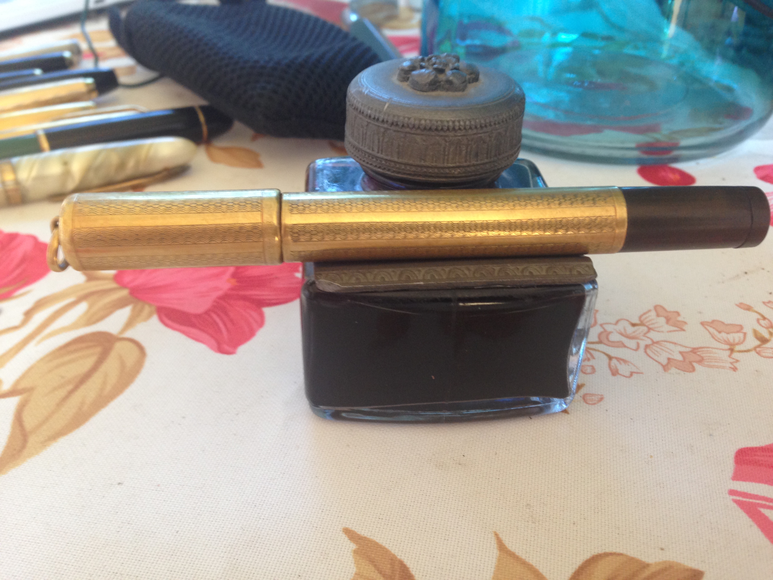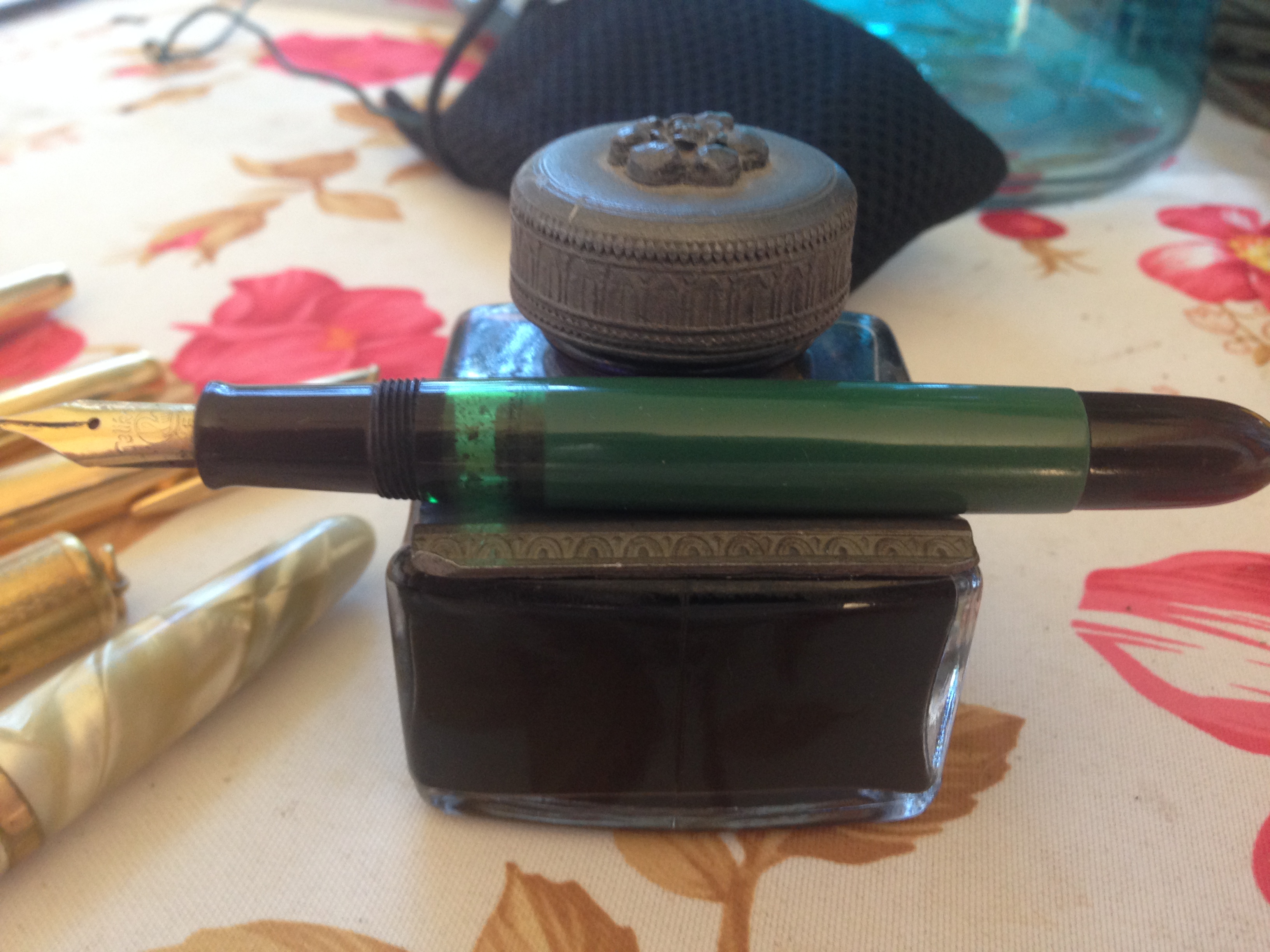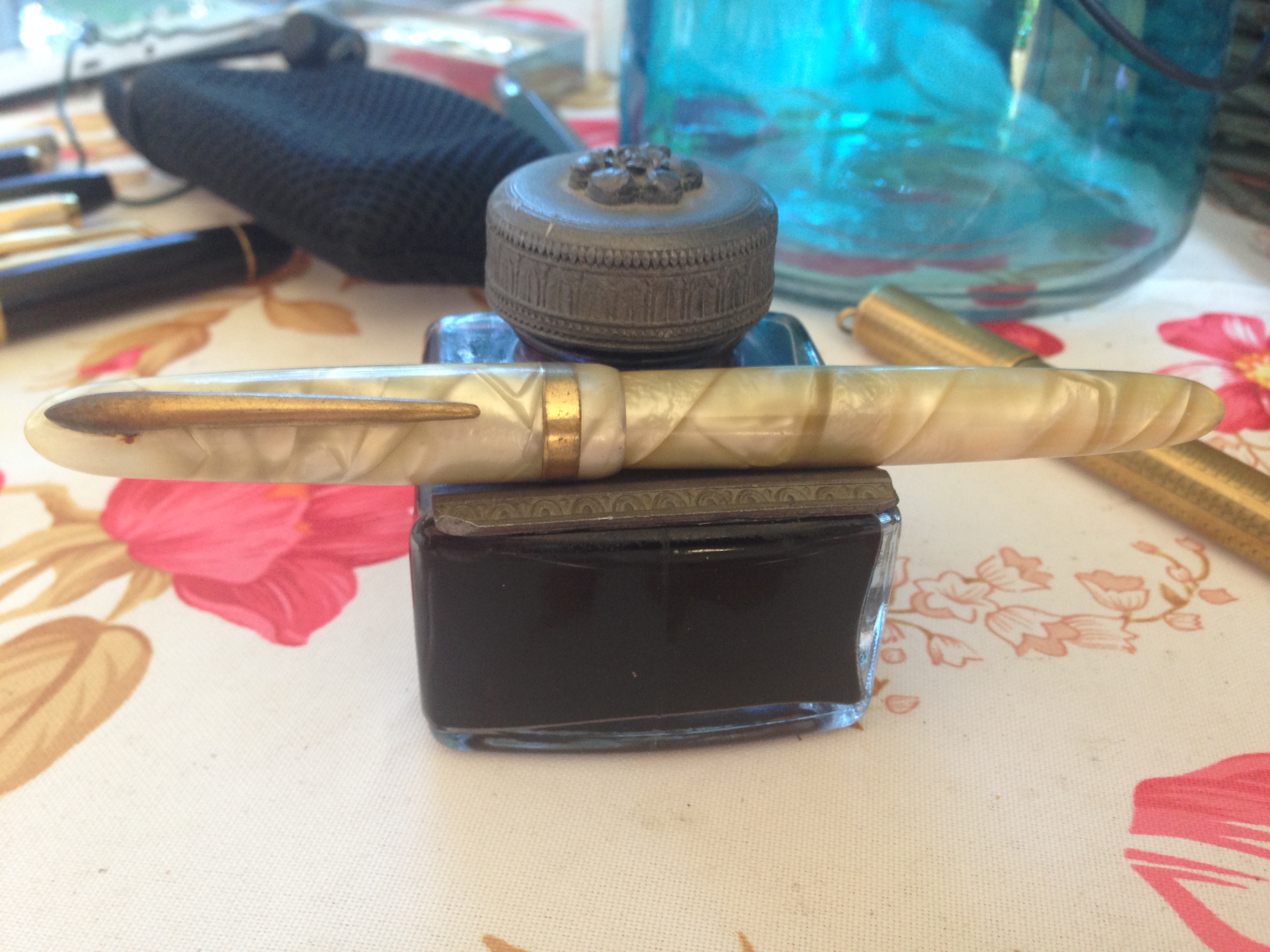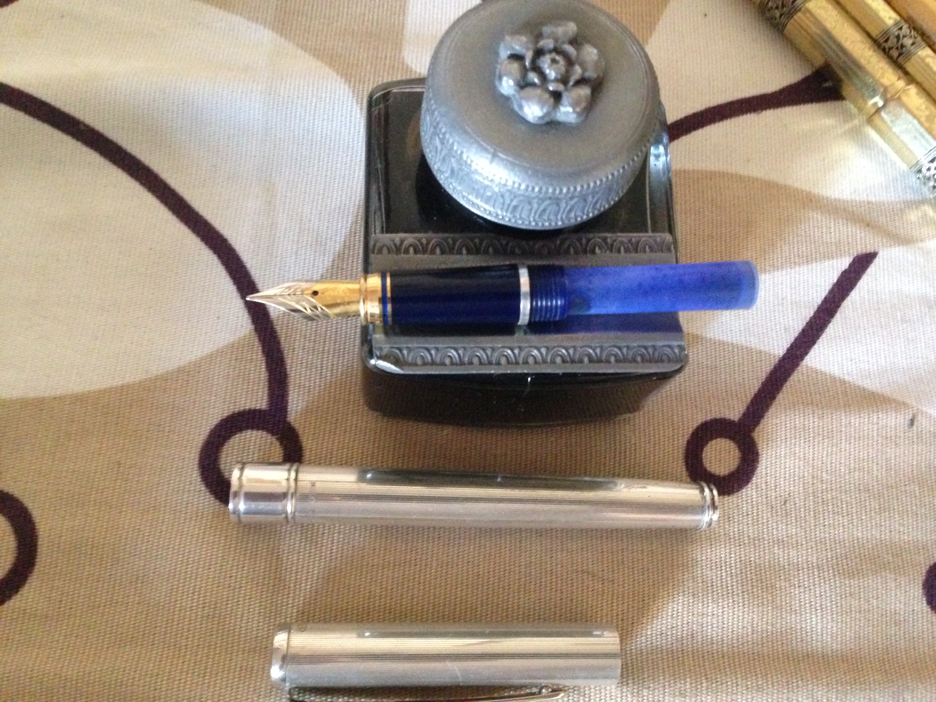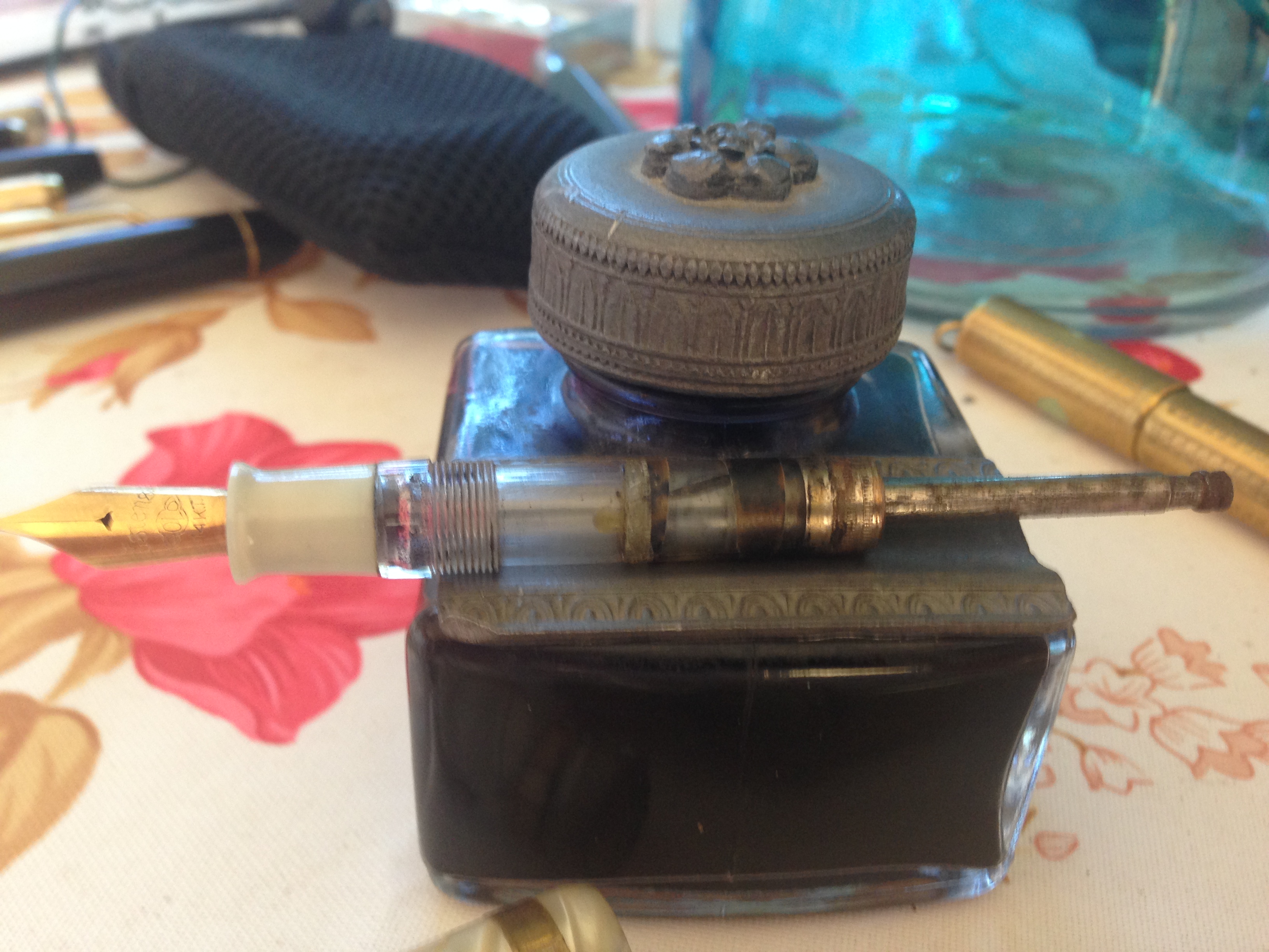 La penna e' in buona stato, da sistemare il pennino che è stato usato con manina pesante, l'inchiostro è perfetto, boccetta piena provato per intinzione sugli altri acquisti