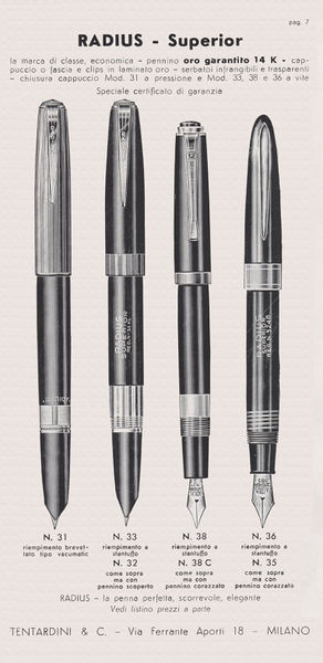 Complimenti, una bella serie di ritrovamenti, interessante la Radius, modello che non conoscevo affatto. Se hai tempo e voglia una scansione del foglietto e qualche foto della penna sarebbero un bel contributo per il wiki.