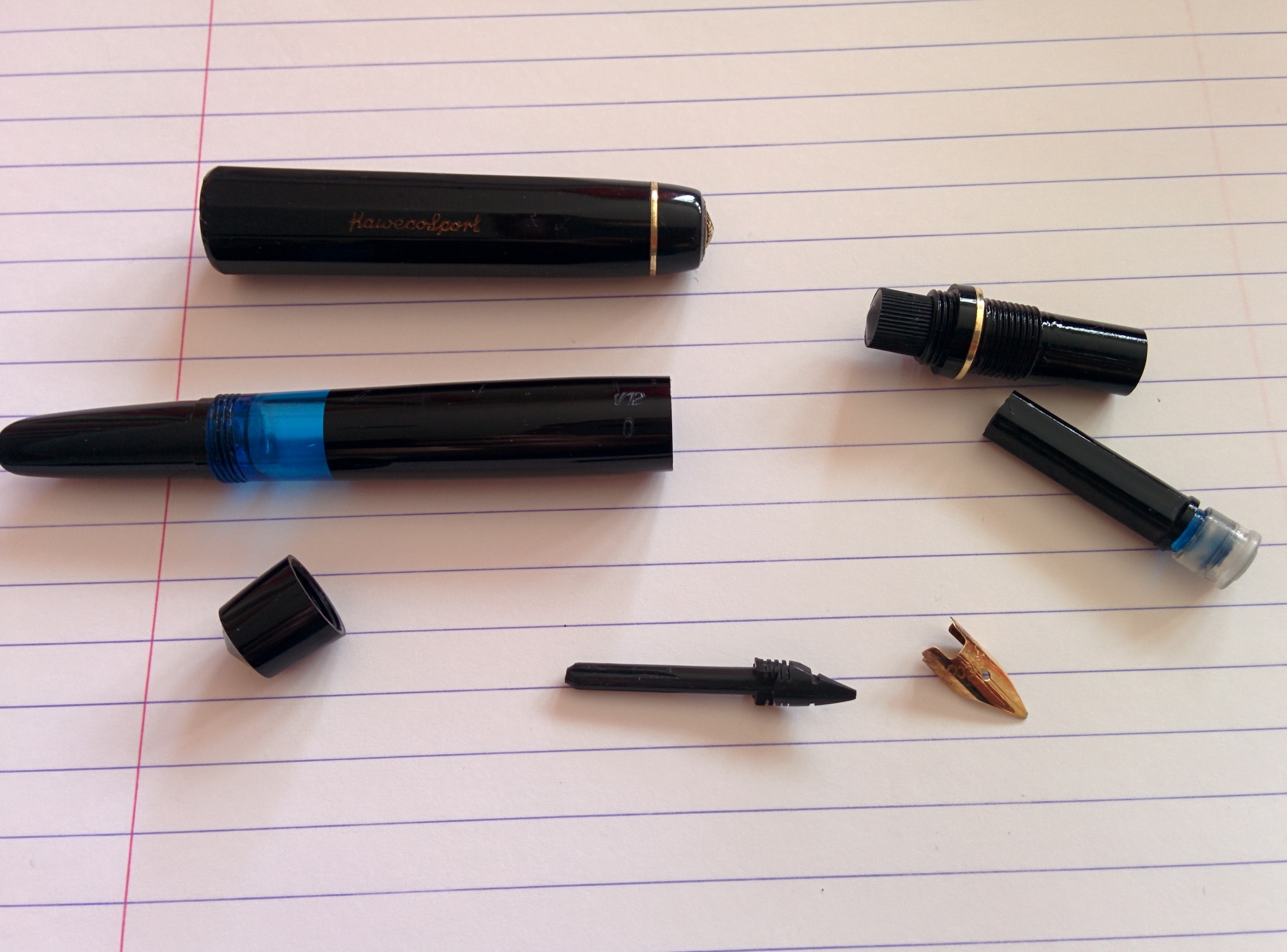 Le operazioni di smontaggio, nel caso si volesse procedere con una pulizia approfondita o alla lubrificazione del pistone, sono molto agevoli: il gruppo pennino - alimentatore si può estrarre sfilandolo dalla sezione mentre il sistema di caricamento è avvitato al corpo della penna.