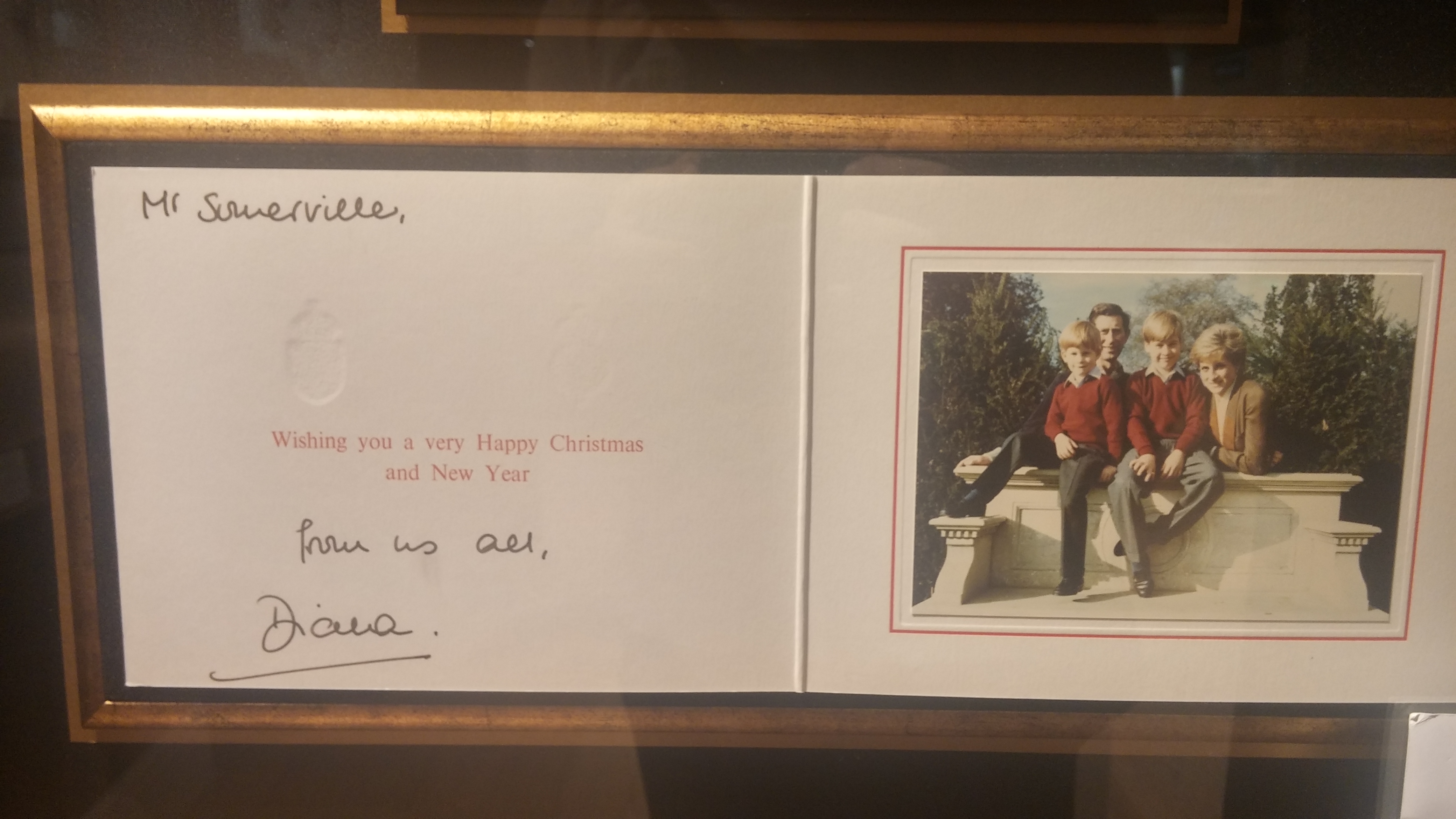 La cosa che mi è saltata all'occhio è questa cartolina d'auguri che rappresenta in foto Charles, Harry, William e Diana e dei semplicissimi auguri di buon natale e felice anno nuovo scritti dalla principessa.