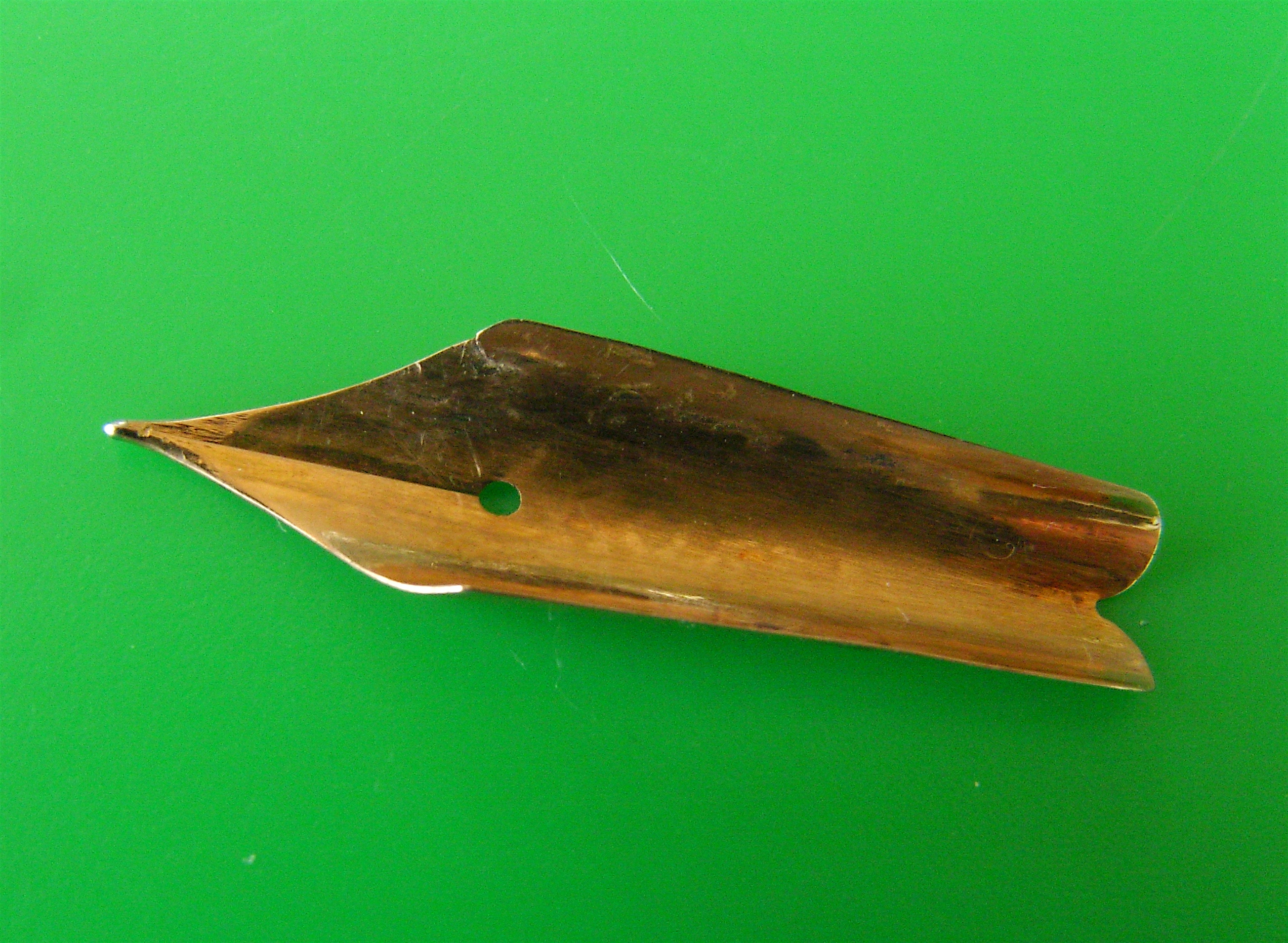 Poi, da quello che ho capito dagli orefici a cui in principio chiedevo di sistemarmi dei pennini, la saldatura dell'oro, mantenendo al contempo la tempra e l'elasticità originali non è cosa banale. Tanto è vero che sono riuscito a farmene saldare uno solo: poi mi è stato fatto capire che non era il caso di insistere con lavori del genere.