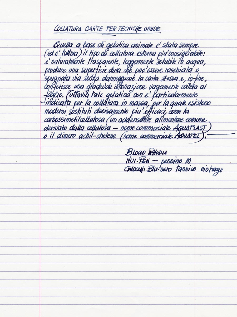 La carta principale è stata la solita (ed ottima) Fabriano Copy 1, ma ho eseguito alcuni test anche su Rhodia e su un quaderno con carta piuttosto porosa, non adatta alla stilografica.